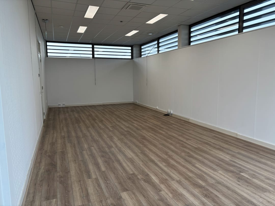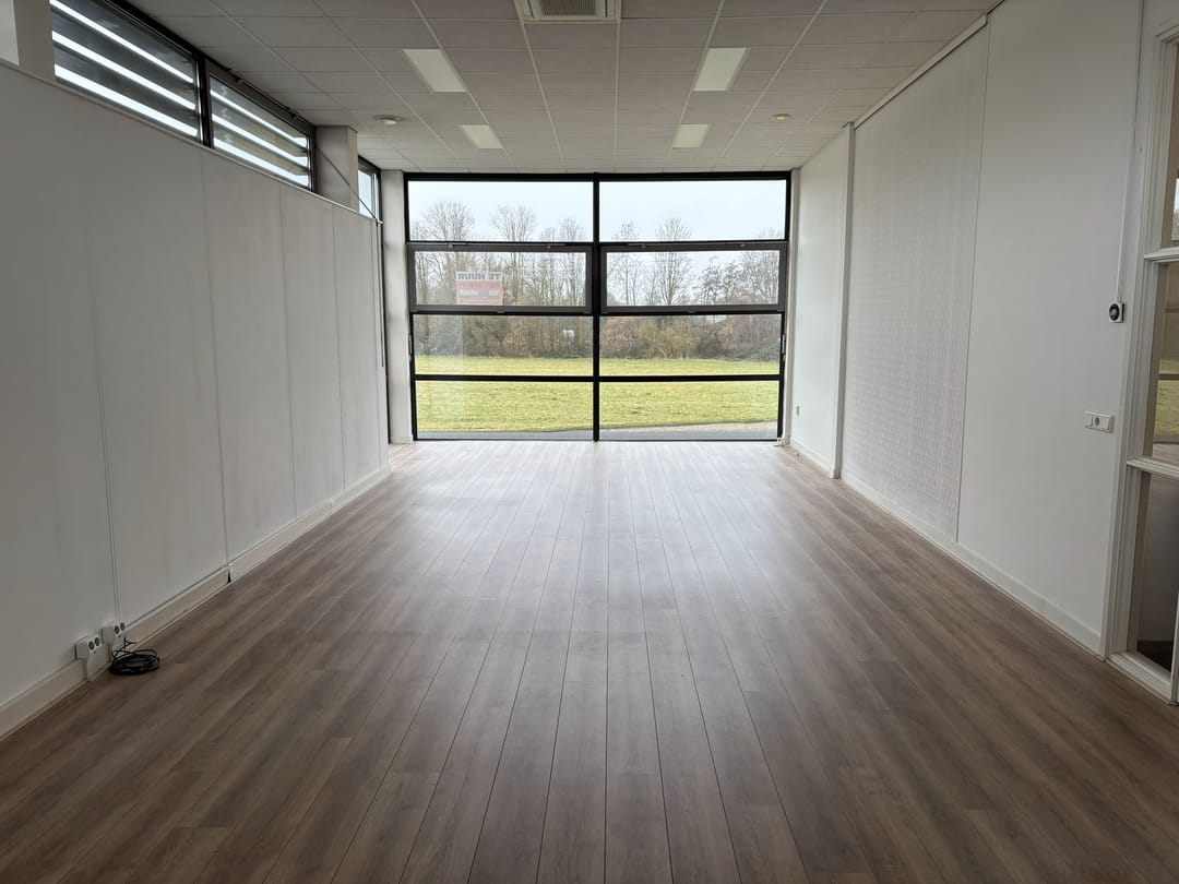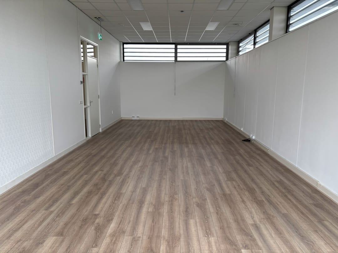 De ruimte is voorzien van lichte wandafwerking, laminaat, kabelgoten en systeemplafond met verlichting en airconditioning. De bovenlichten en de brede raampartij aan de voorzijde geeft veel licht in de kantoorruimte waarmee een plezierige werkomgeving.