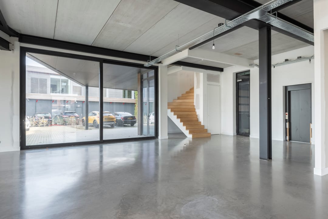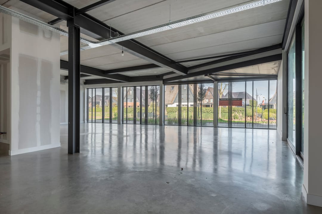 Via de entree betreedt u de begane grond, waar direct de ruimtelijkheid en het daglicht opvallen dankzij de grote raampartijen. De ruimte is deels ingedeeld met scheidingswanden en biedt mogelijkheden voor het realiseren van een pantry. Tevens zijn er meerdere toiletvoorzieningen aanwezig.