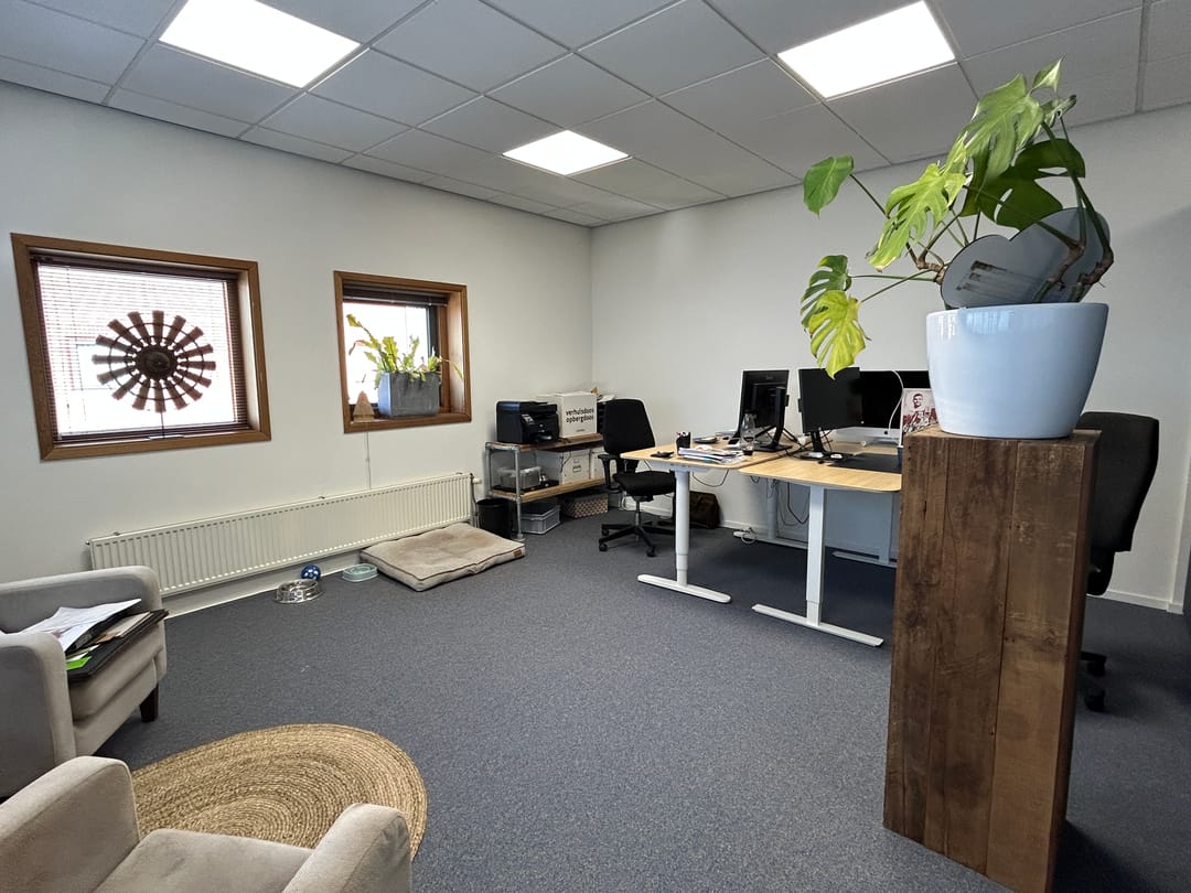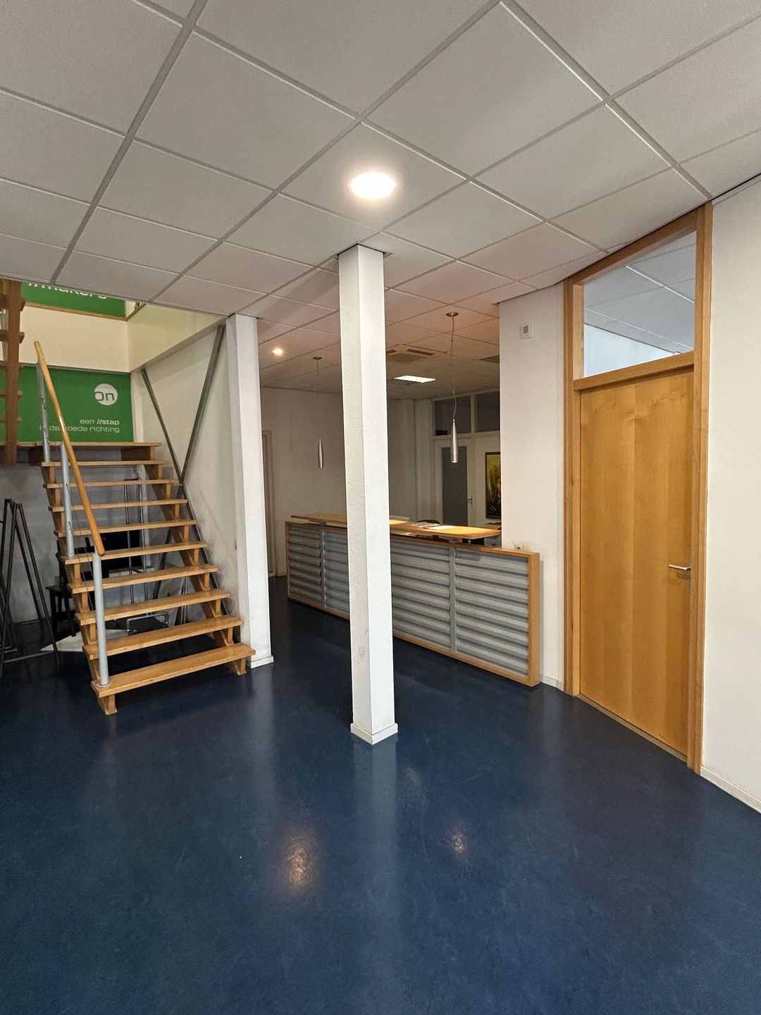 Via de gezamenlijke entree met afgesloten voorportaal komt men in de ontvangsthal met trap naar de verdieping. Op de overloop van de verdieping bevindt zich een zelfstandige dubbele toiletruimte met voorportaal. De entree naar de kantoren is afgesloten middels een deur met glas. Er is sprake van één ruime open kantoorruimte v.v. een separate spreekkamer van circa 29 m². De kantoorruimte beschikt over veel daglichttoetreding via, deels te openen, vensters in de voor- en zijgevels en heeft een plafondhoogte van 2,7 m.