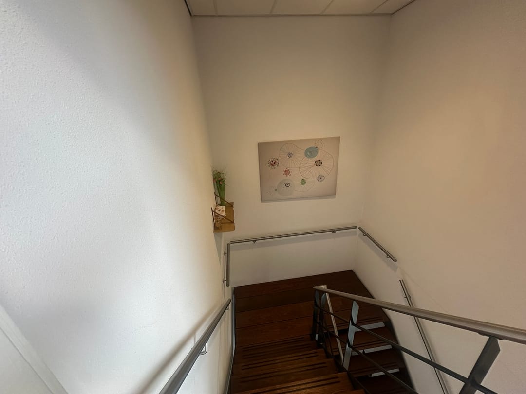 Ruime hal entree met opgaand trappenhuis naar de 1e etage, wachtruimte en gescheiden dames- en herentoiletten. 4 Kantoor /praktijkruimtes van 31 m2, 26,5m2, 22,6 en 8,6 m2