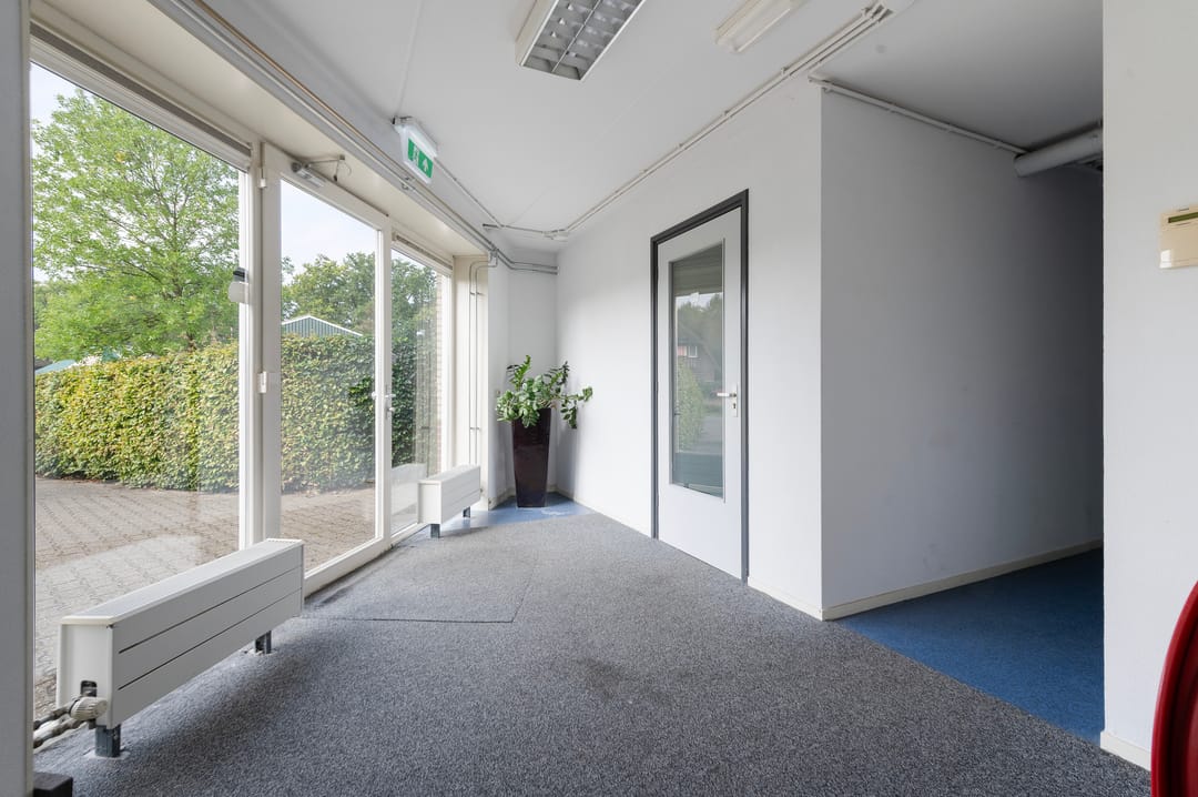 Indeling: entree, hal met opgang naar de eerste verdieping, meerdere aansluitende kantoorkamers met veel daglichttoetreding (op het Westen) voorzien van vloerbedekking, verlichtingsarmaturen, vier kantoorkamers dubbele gescheiden toiletgroep en separate doucheruimte. Het buitenterrein beschikt over een groen omgeving, ruime overdekte fietsenstalling en minimaal 8 parkeerplaatsen aan de voorzijde.
