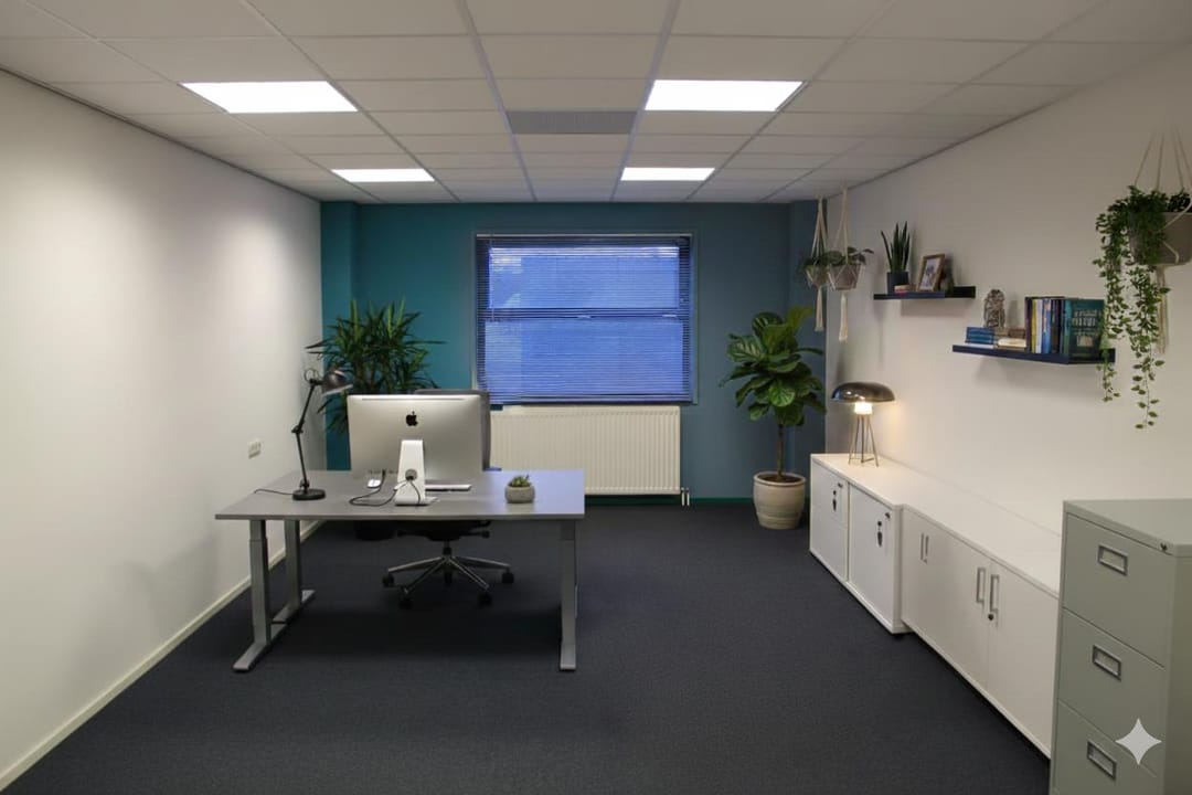 De kantoorruimte is turn-key en bevindt zich op de eerste verdieping. De indeling bestaat uit drie ruime kantoorkamers, een eigen toiletgroep en een magazijn-/opslagruimte, ideaal voor bedrijven die behoefte hebben aan een flexibele en goed uitgeruste werkplek.