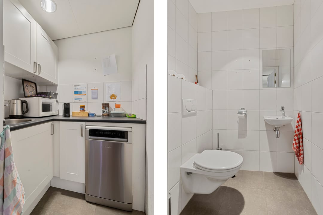 De kantoor- winkelruimte is op een zeer sfeervolle locatie gelegen. In de directe omgeving zijn onder andere dienstverlenende kantoorgebruikers en diverse horeca en winkels gevestigd.