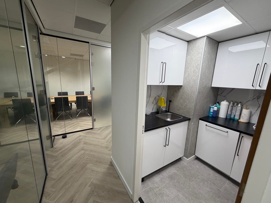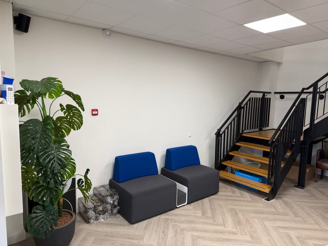 - Systeemplafond met verlichtingsarmaturen;