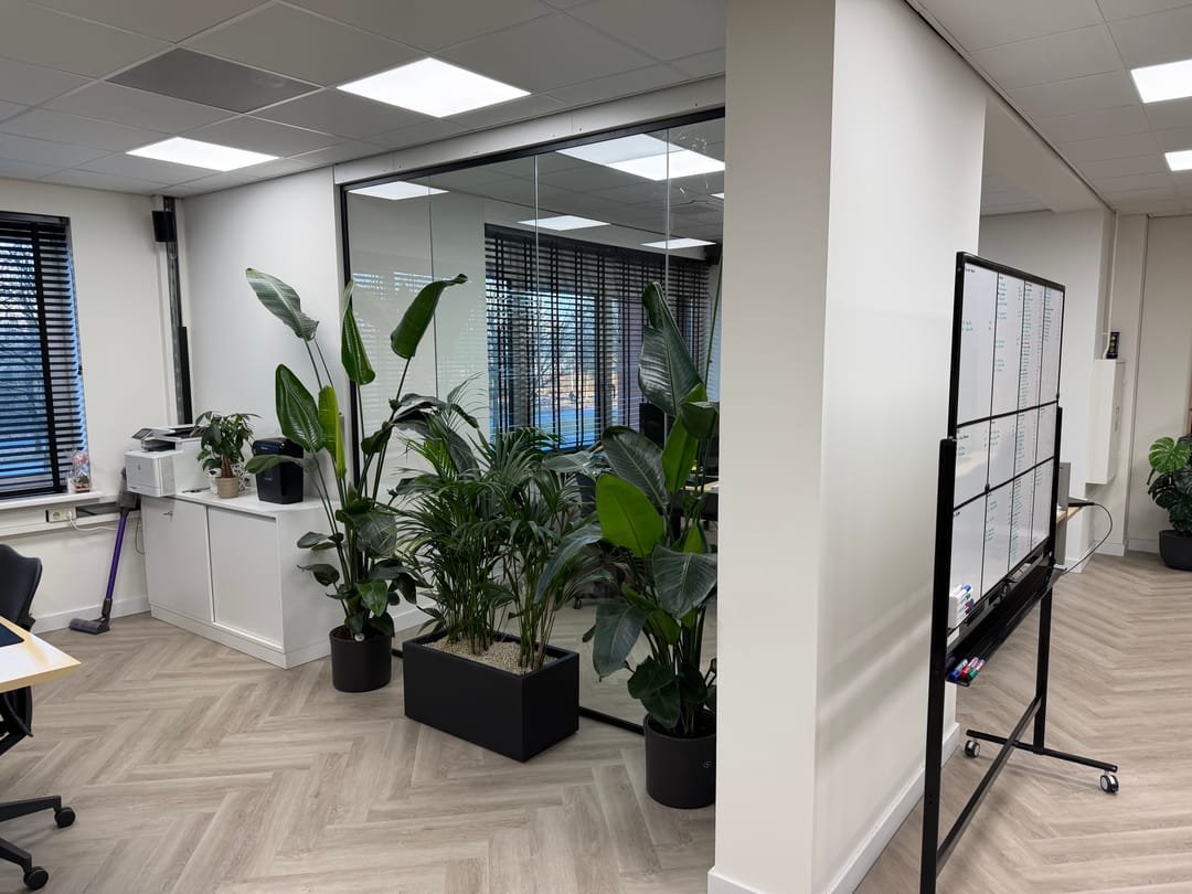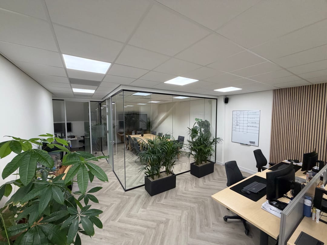 - Glazen scheidingswanden;