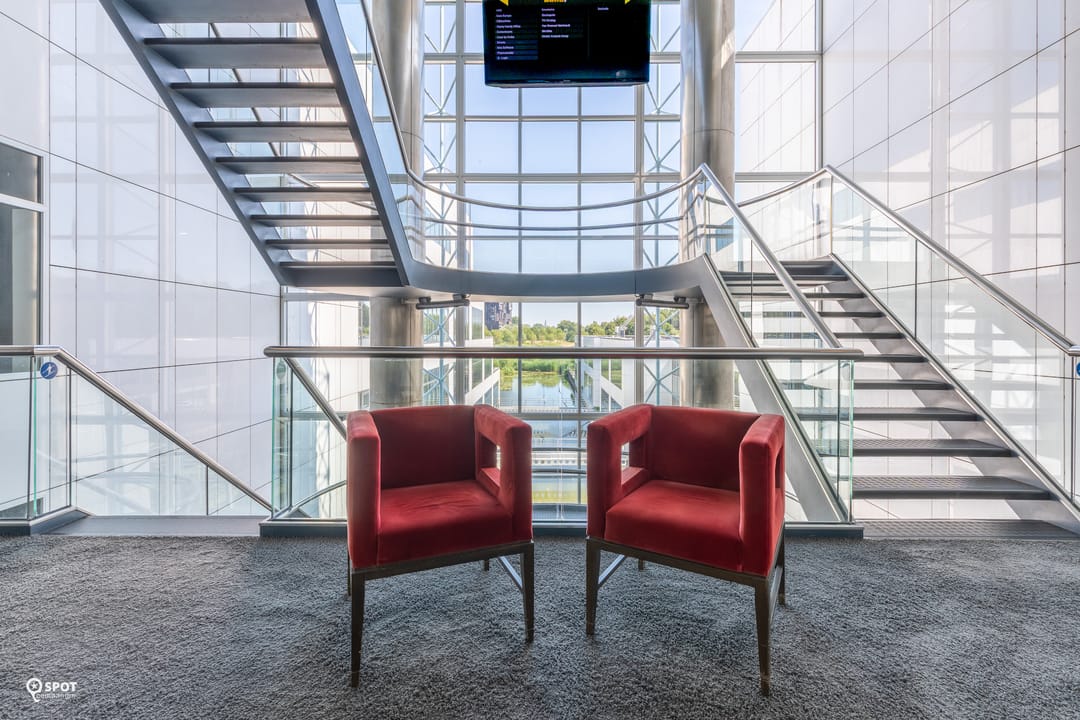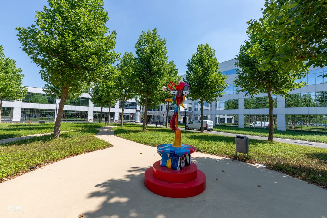 Er zijn 600 parkeerplaatsen gelegen naast het gebouw.