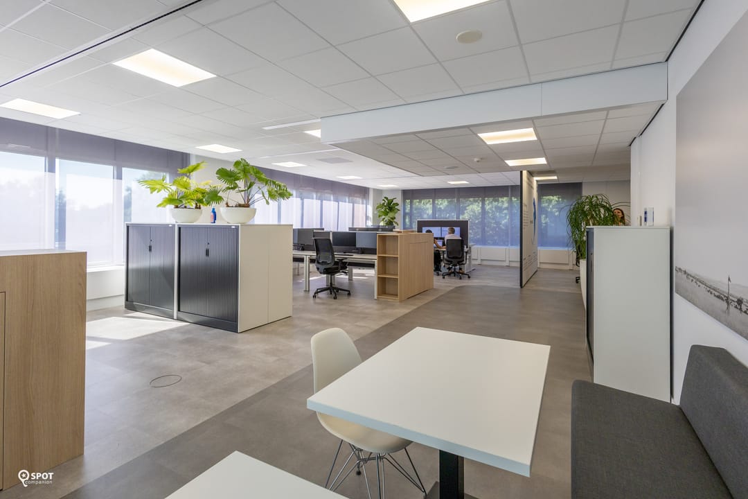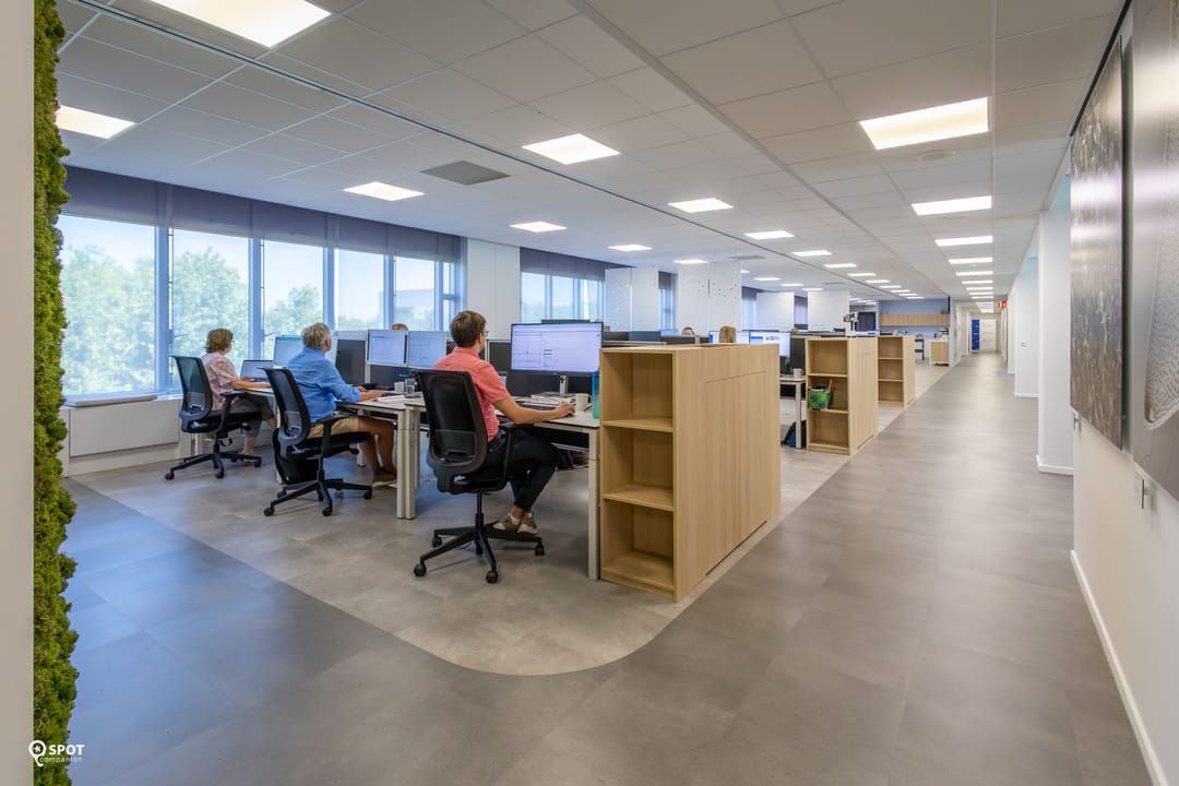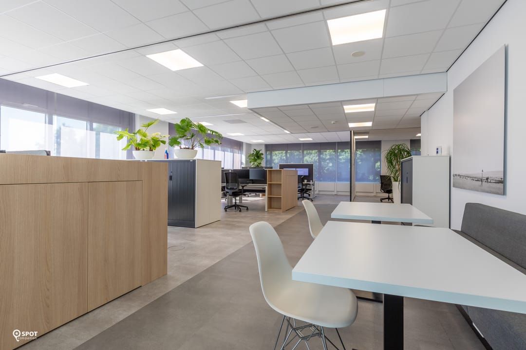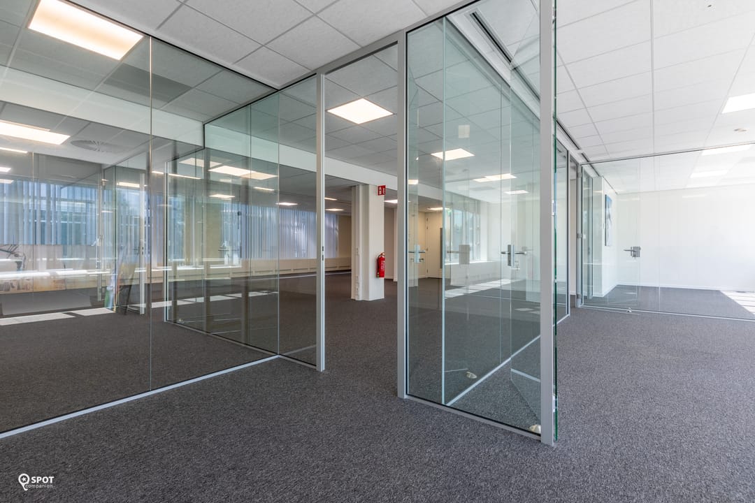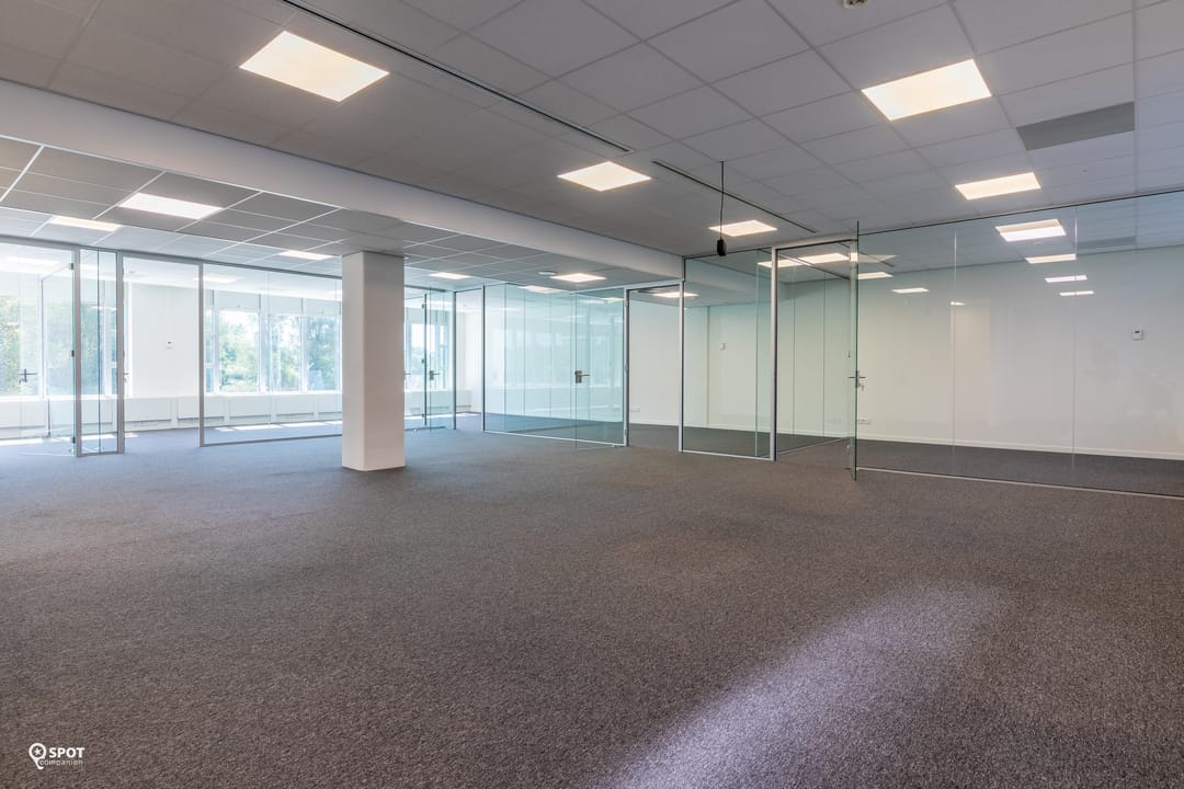 - Volledig aangeklede kantoorruimtes inclusief vloerbedekking en systeemplafonds met verlichting;