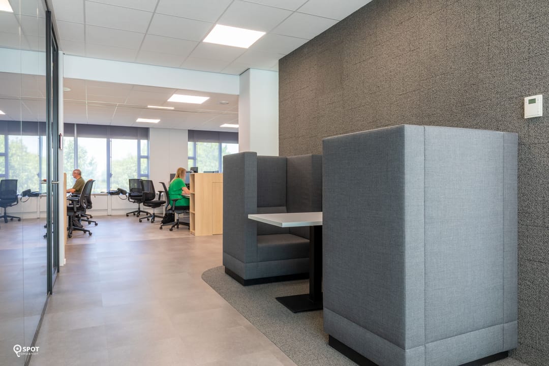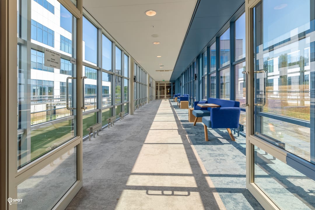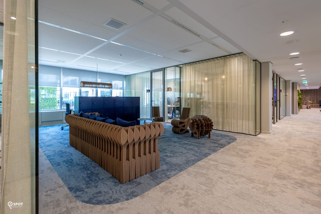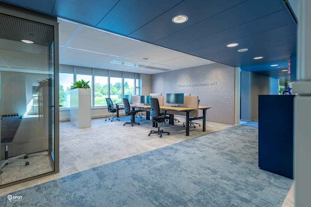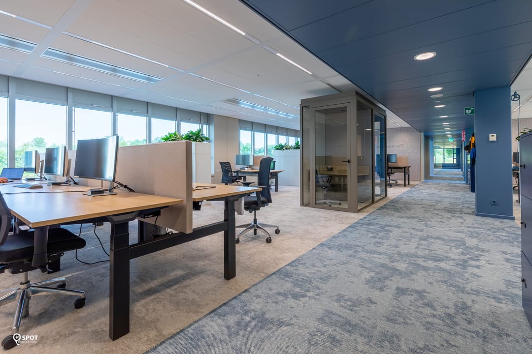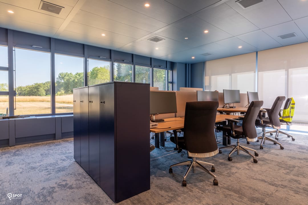 - Volledig aangeklede kantoorruimtes inclusief vloerbedekking en systeemplafonds met verlichting;