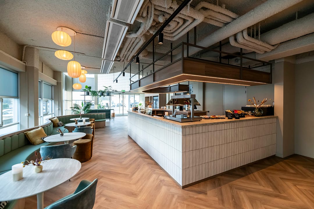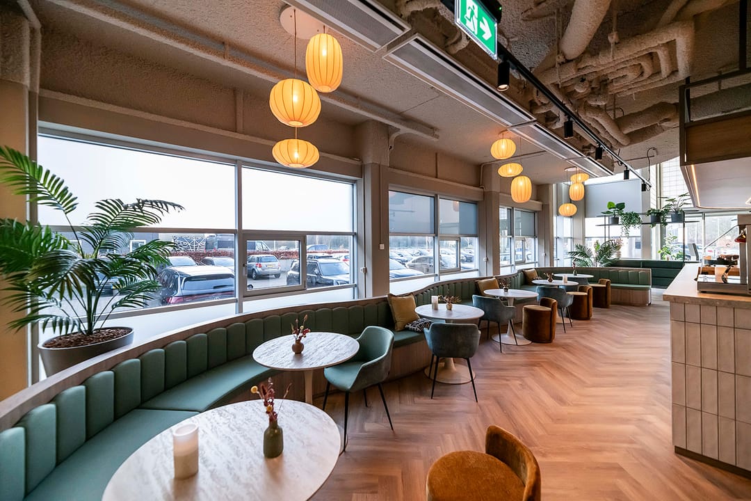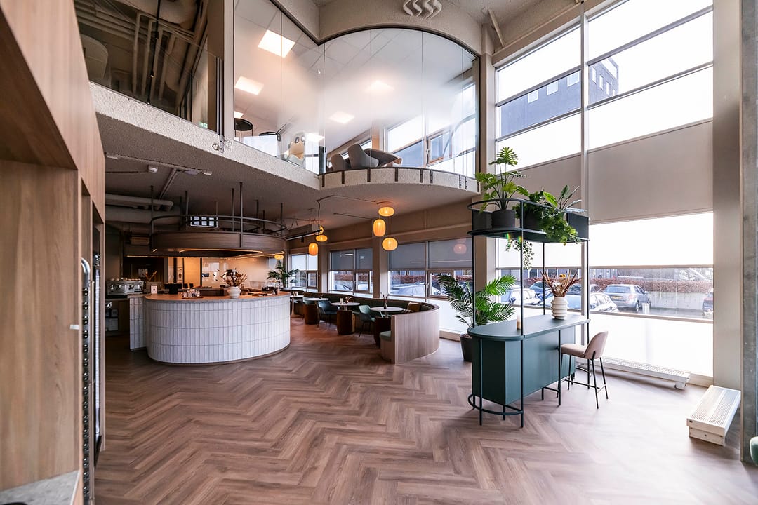 Denk aan een sociaal hart met lunchgelegenheid en sfeervolle lobby, een receptie met een vriendelijke host, vergaderruimtes, flexplekken én goede koffie.