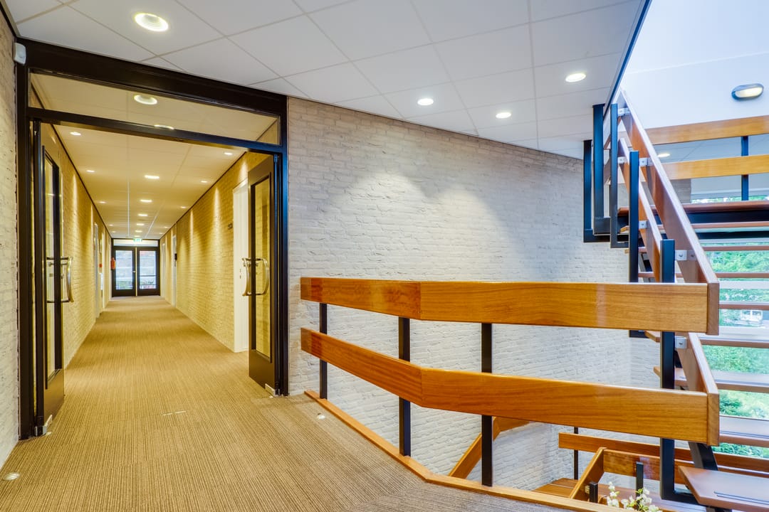 Op de eerste verdieping (links) bieden wij een kantoorvleugel te huur aan met diverse kantoorkamers.