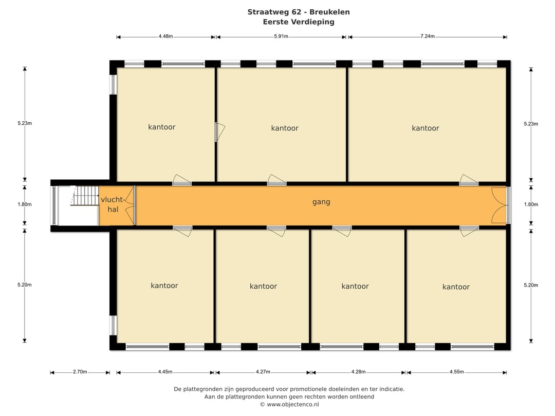 - huidige indeling in kantoorkamers, voorzien van flexibele en stucwerk wanden;
