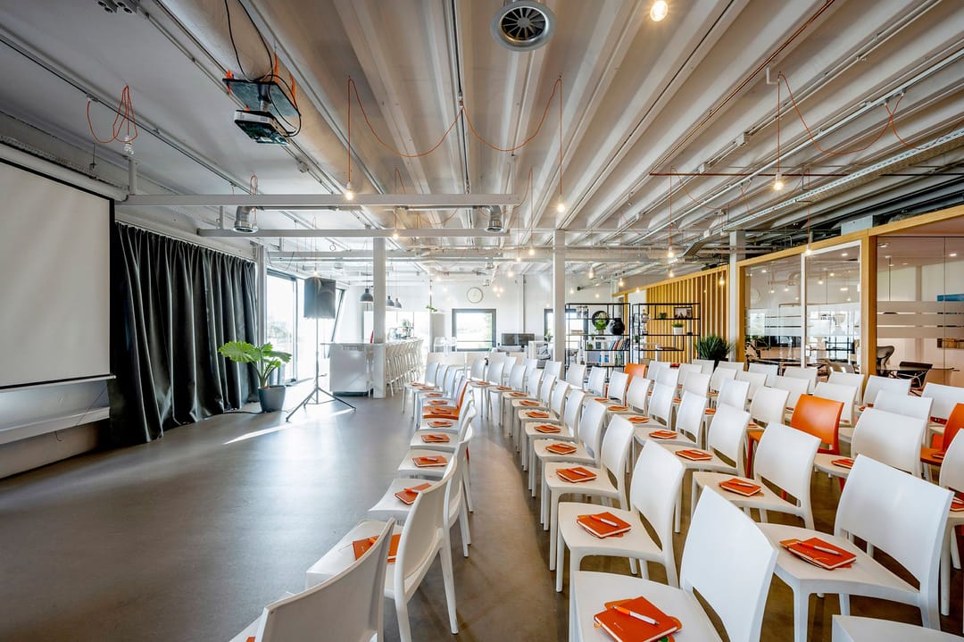 Circa 54 gereserveerde parkeerplaatsen gelegen op het afgesloten achtergelegen terrein, waarvan 2 met een laadvoorziening voor elektrische auto's.