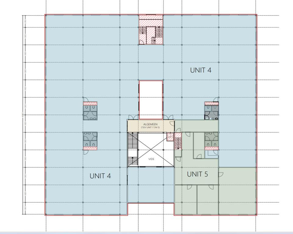 Voor de verhuur is circa 1.592 m² kantoor-/showroomruimte beschikbaar, gelegen op de gehele 1e verdieping.