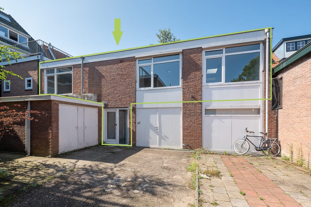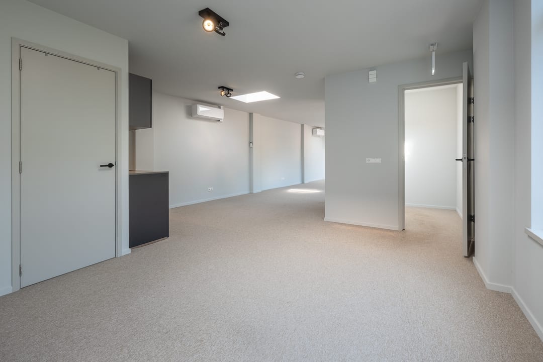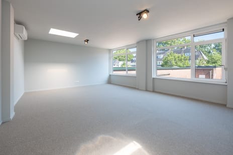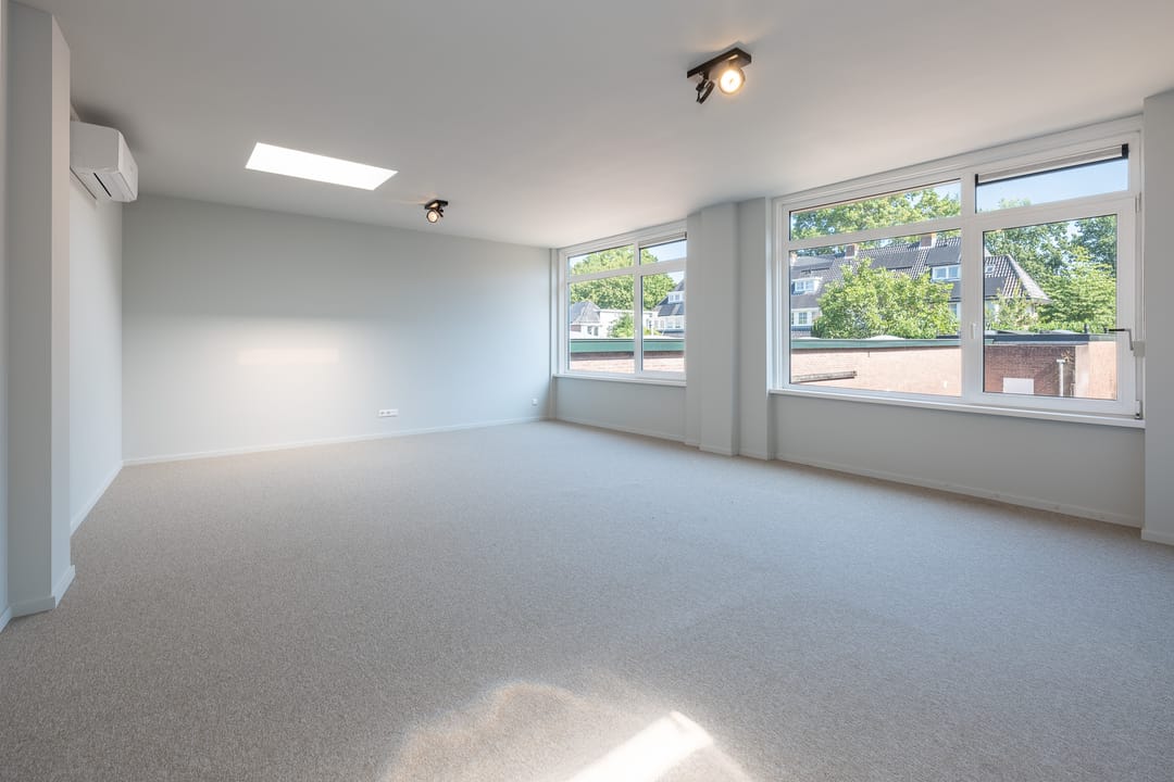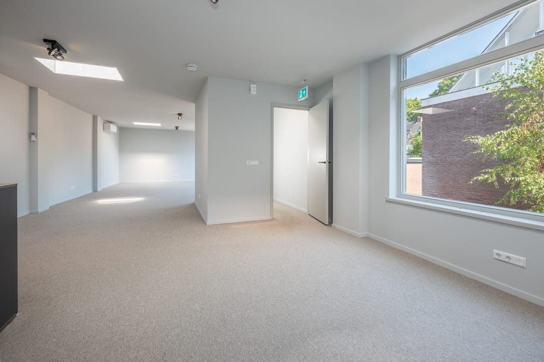 Dankzij de ligging boven een atelier en zonder directe buren geniet u van een rustige werkomgeving, terwijl winkels, park ’t Mouwtje en NS station Naarden-Bussum op loopafstand liggen.