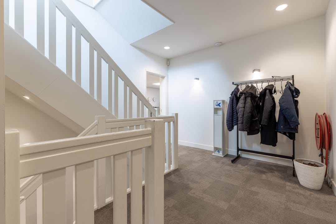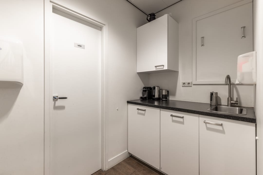 Op de 1e verdieping is eveneens voor gezamenlijk gebruik een toiletgroep en pantry gelegen. Het is mogelijk op de 2e verdieping een kleine pantry te plaatsen.