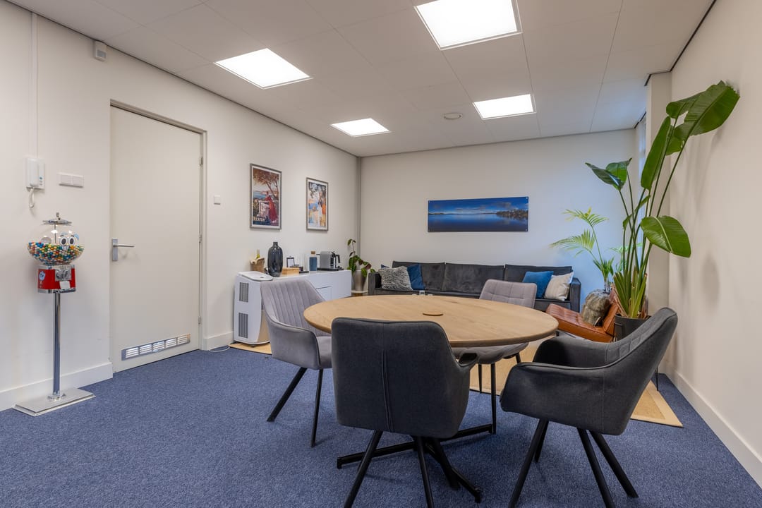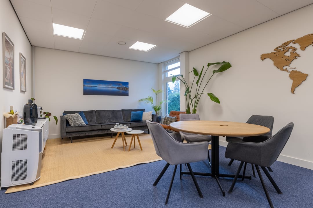Op de begane grond bevindt zich een toiletgroep en in het souterrain een keuken en het vergadercentrum met 3 vergaderruimtes voor gezamenlijk gebruik.