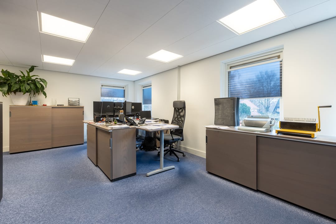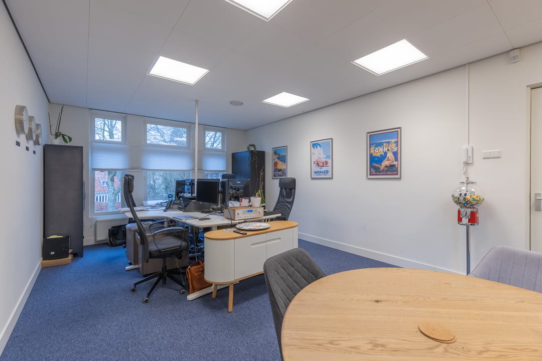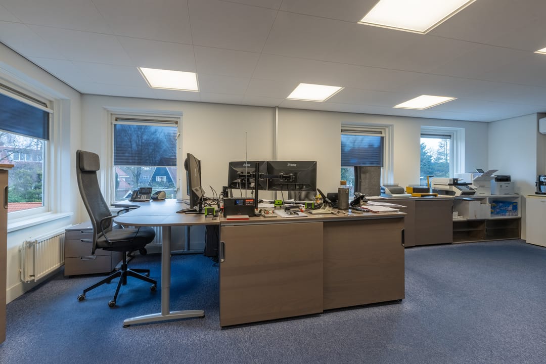Deze kantoorruimte is verdeeld over 2 kamers op de 1e verdieping en de gehele 2e verdieping.