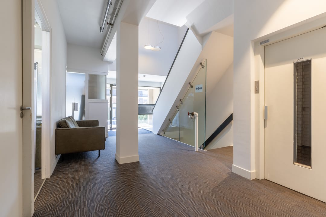 De kantoorruimte beschikt daarnaast over een eigen pantry en sanitaire voorzieningen, wat bijdraagt aan zelfstandigheid en gebruiksgemak. In het gebouw is een lift aanwezig, waardoor alle verdiepingen eenvoudig toegankelijk zijn.