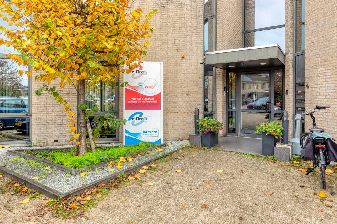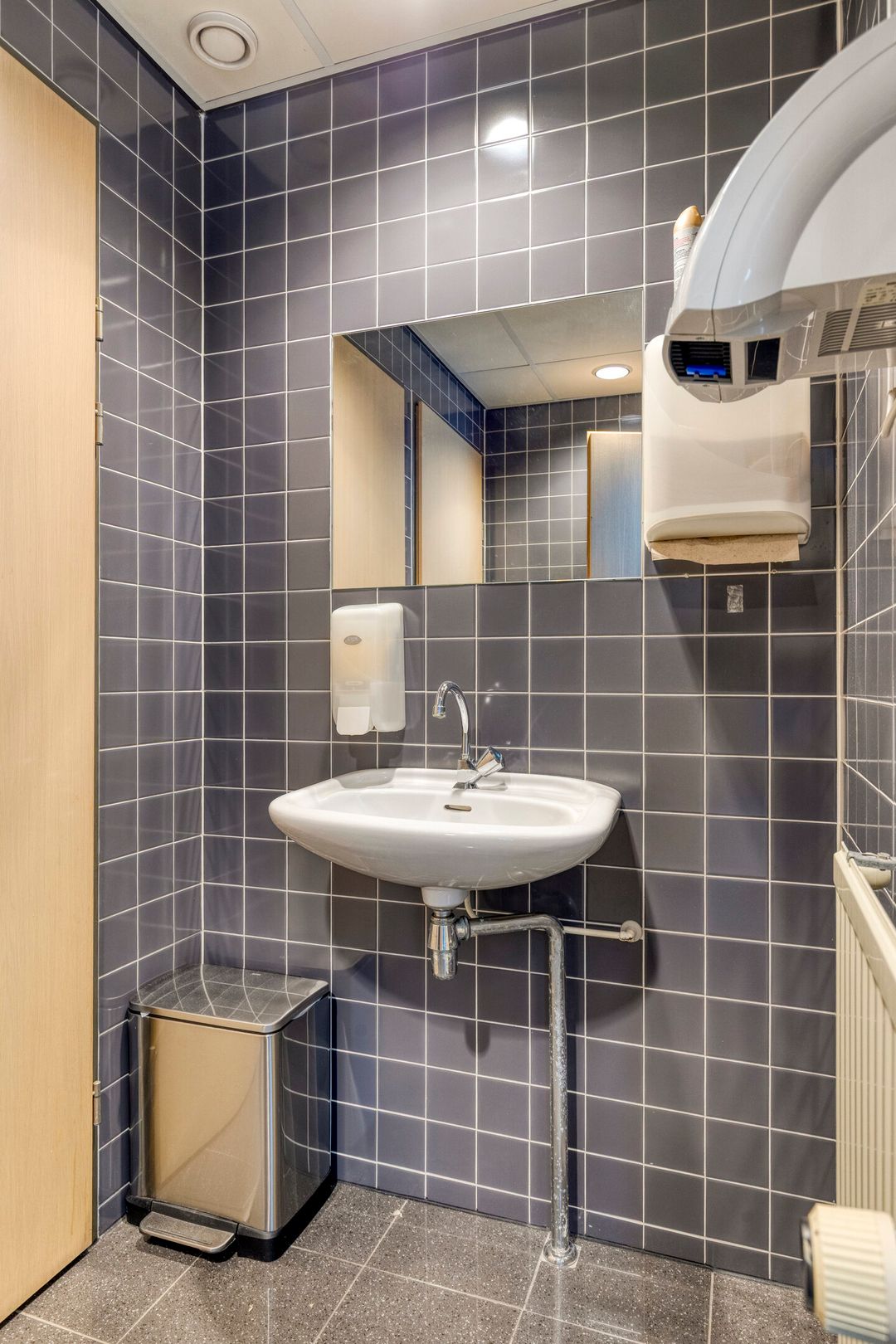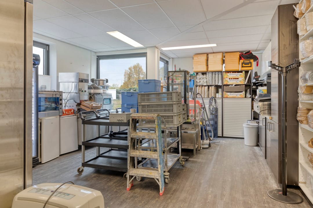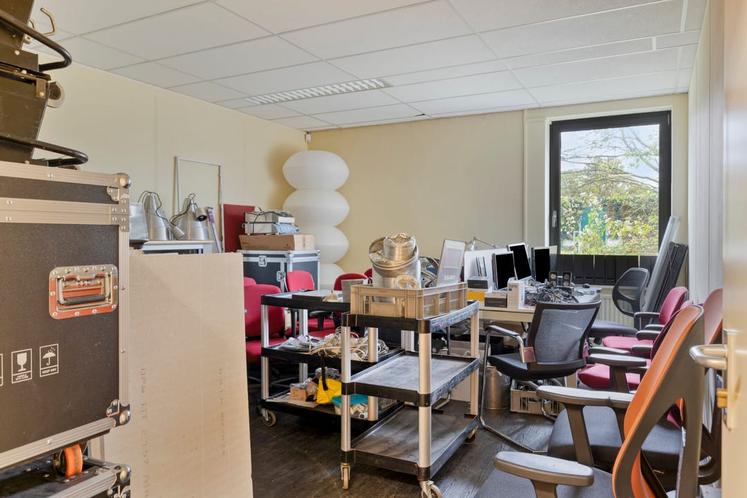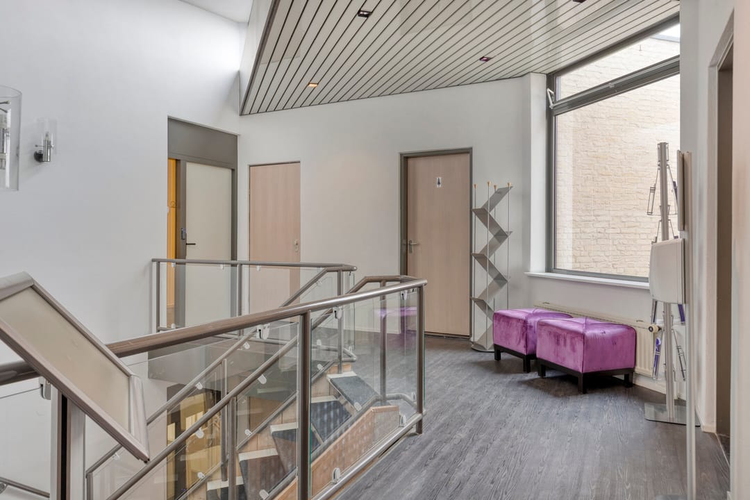 De andere helft van de ruimte beslaat een professioneel ingerichte kantoorruimte verdeeld over diverse hoogwaardig afgewerkte ruimtes, toiletgroep en pantry. Er is voldoende (gratis) parkeergelegenheid voor de deur.