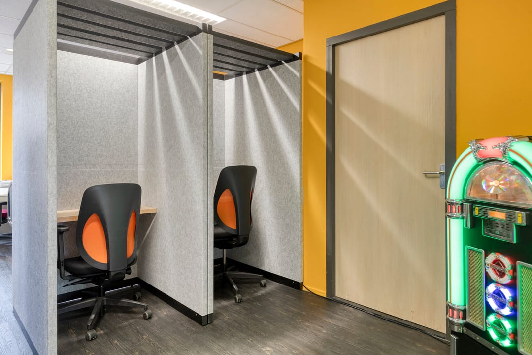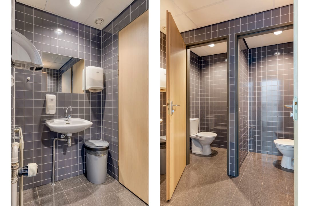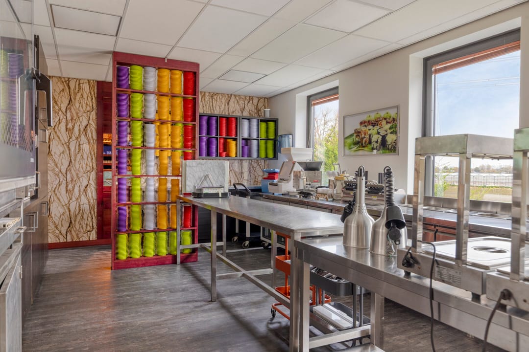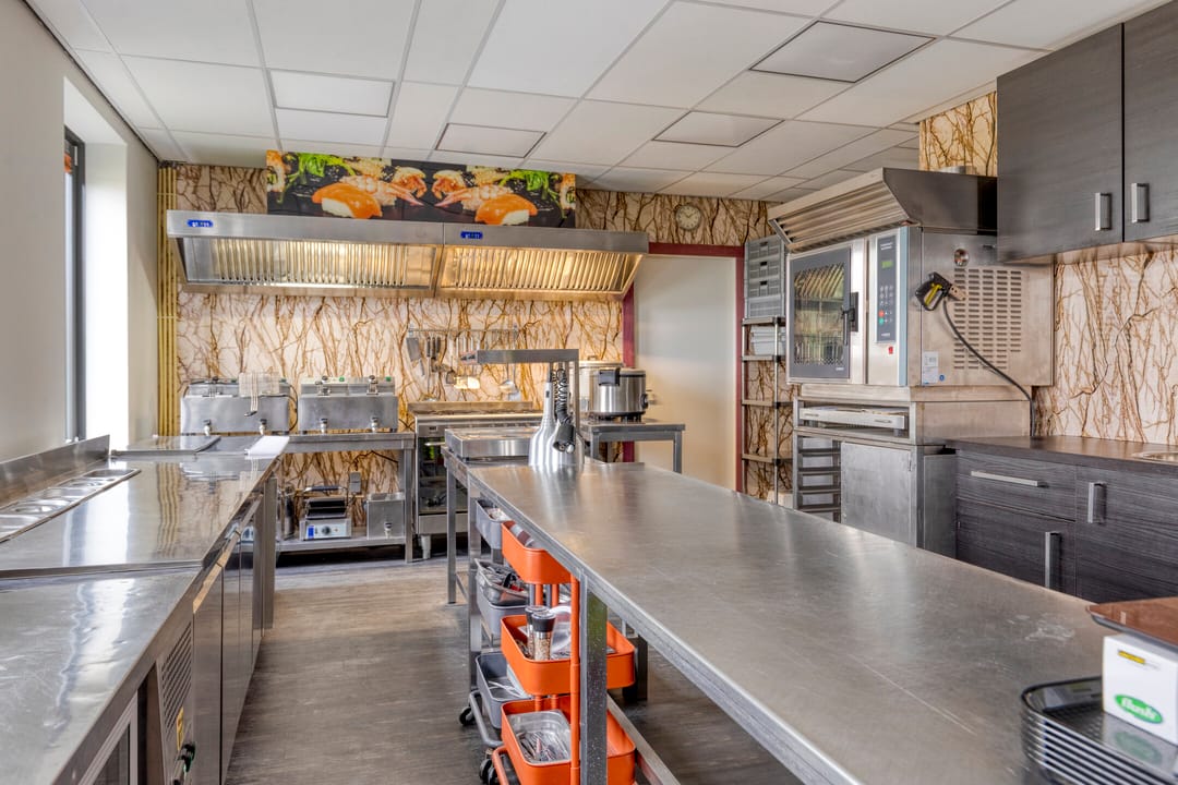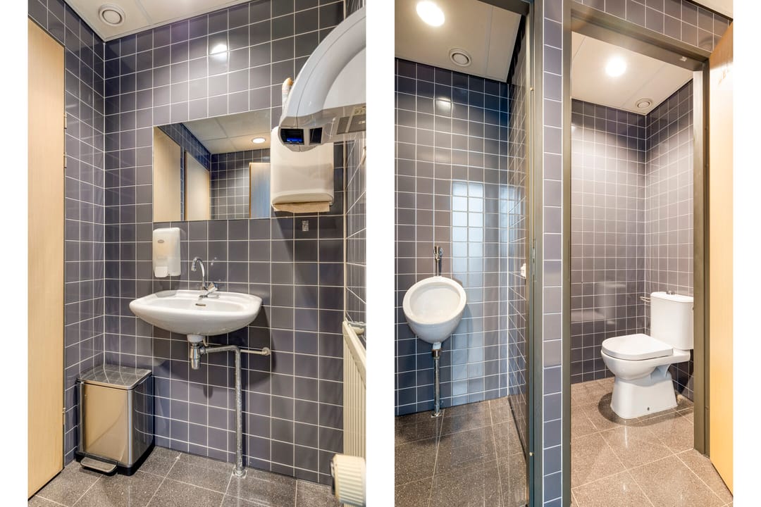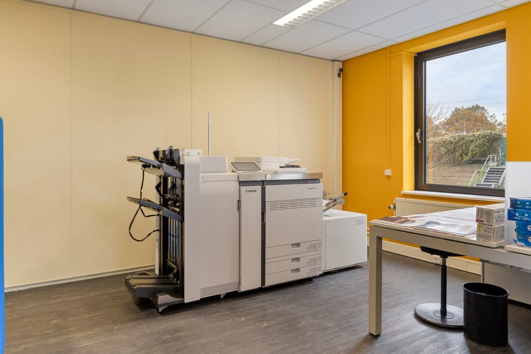 De andere helft van de ruimte beslaat een professioneel ingerichte kantoorruimte verdeeld over diverse hoogwaardig afgewerkte ruimtes, toiletgroep en pantry. Er is voldoende (gratis) parkeergelegenheid voor de deur.