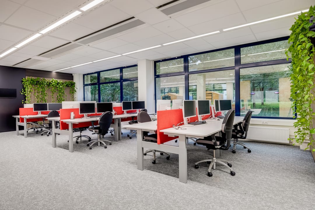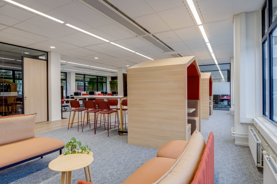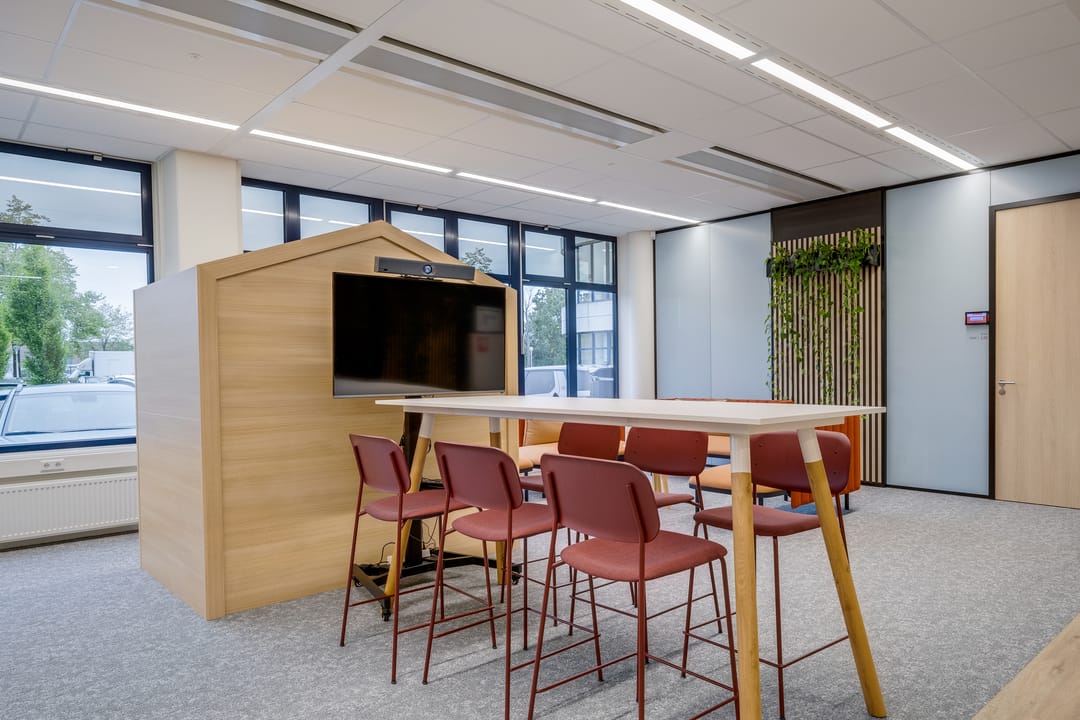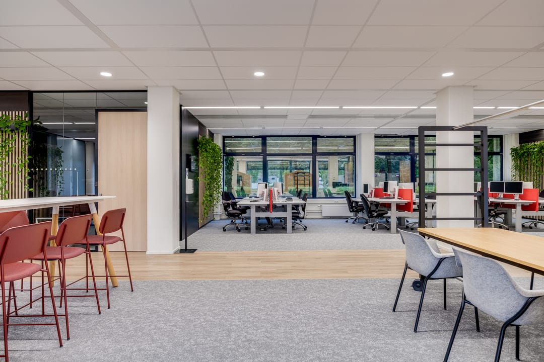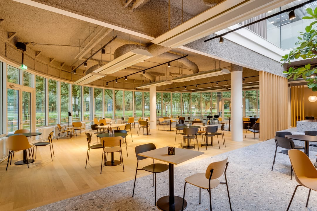 The fully modernized building exudes a contemporary professional style. The central part of the building includes an open entrance, company restaurant, coffee bar, and meeting rooms. The timeless design with clean lines and pure materials makes it the perfect location for your organization.