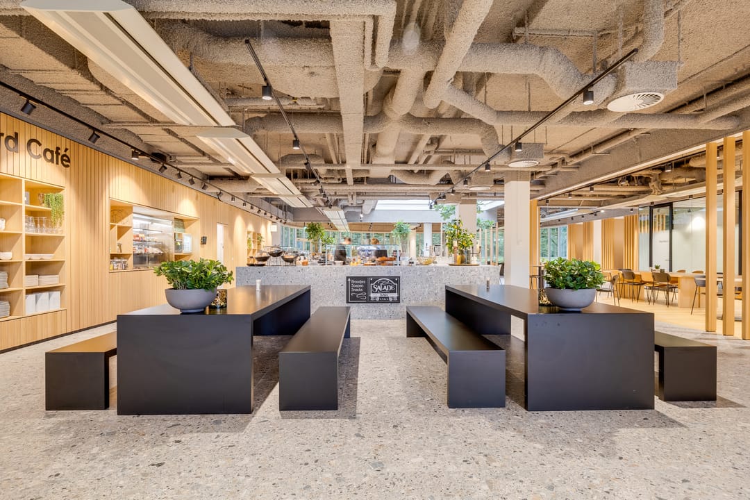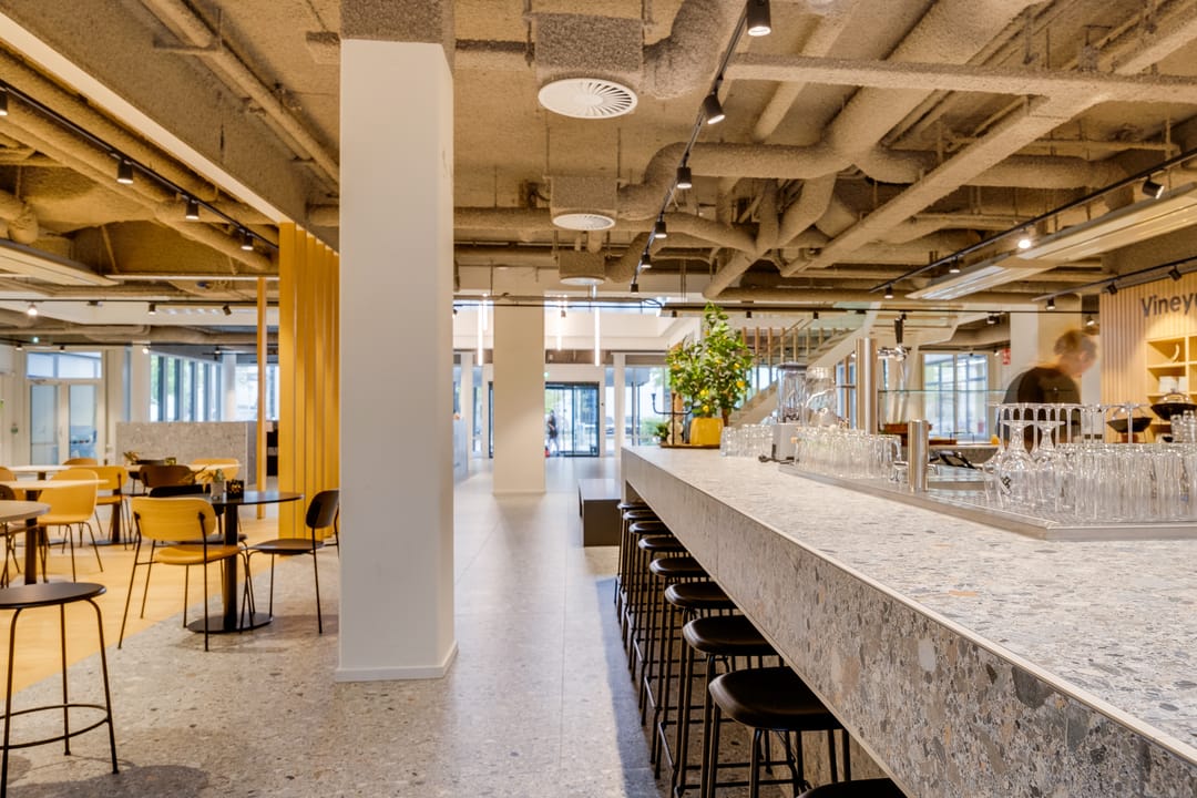 The characterful and sustainably renovated "New Delphi" building offers an inspiring workplace for your organization. The vibrant ambiance and amenities such as a coffee bar and central meeting space ensure every workday starts right. Whether you get straight to work at your own desk or first check emails in the communal area, you'll always feel at home here.