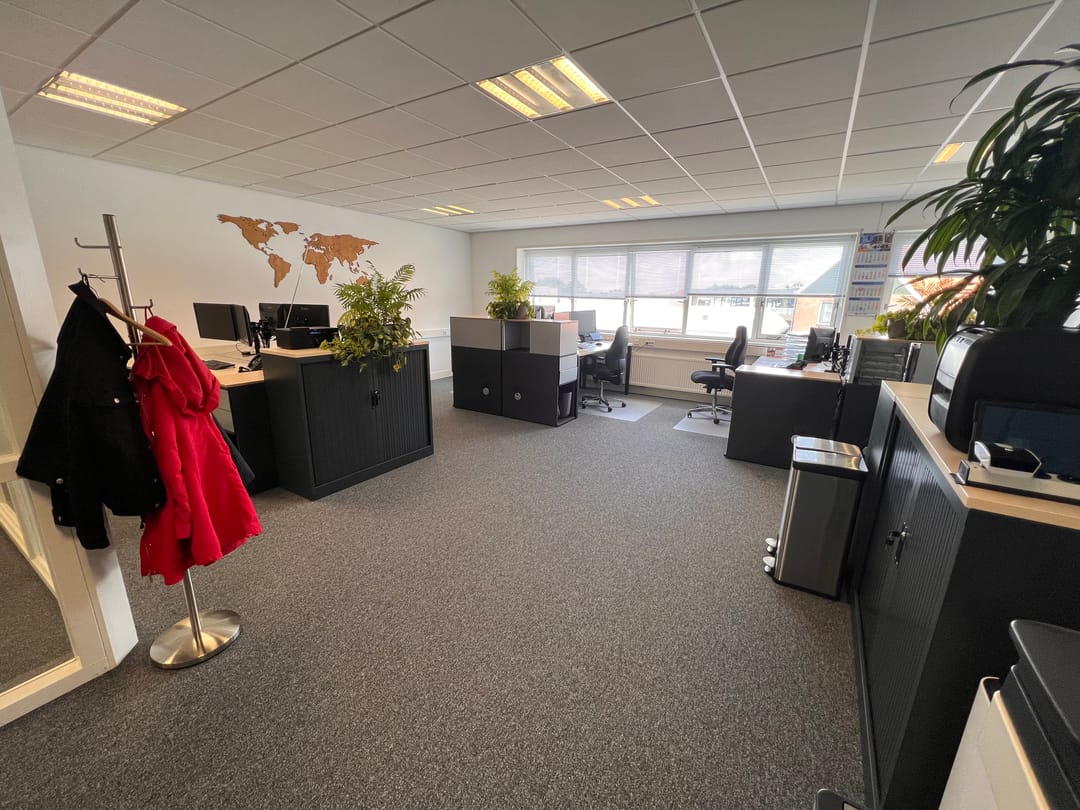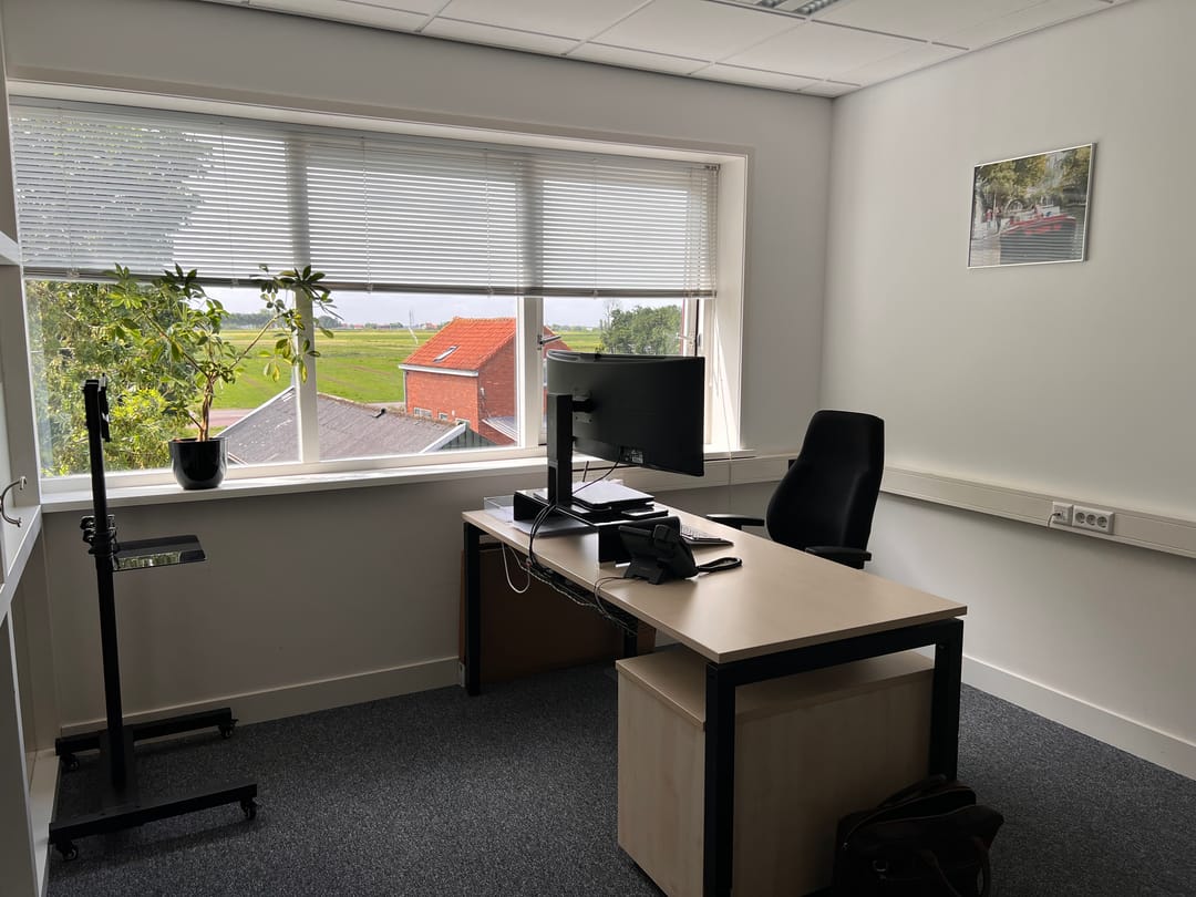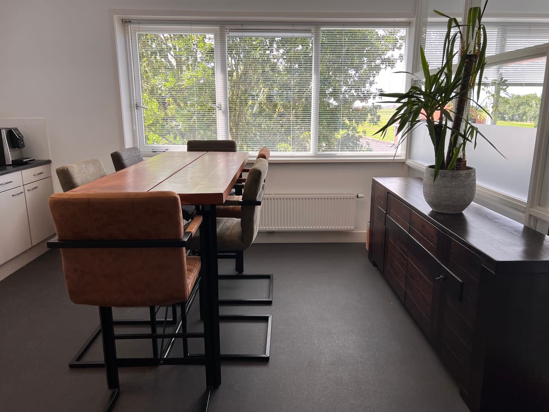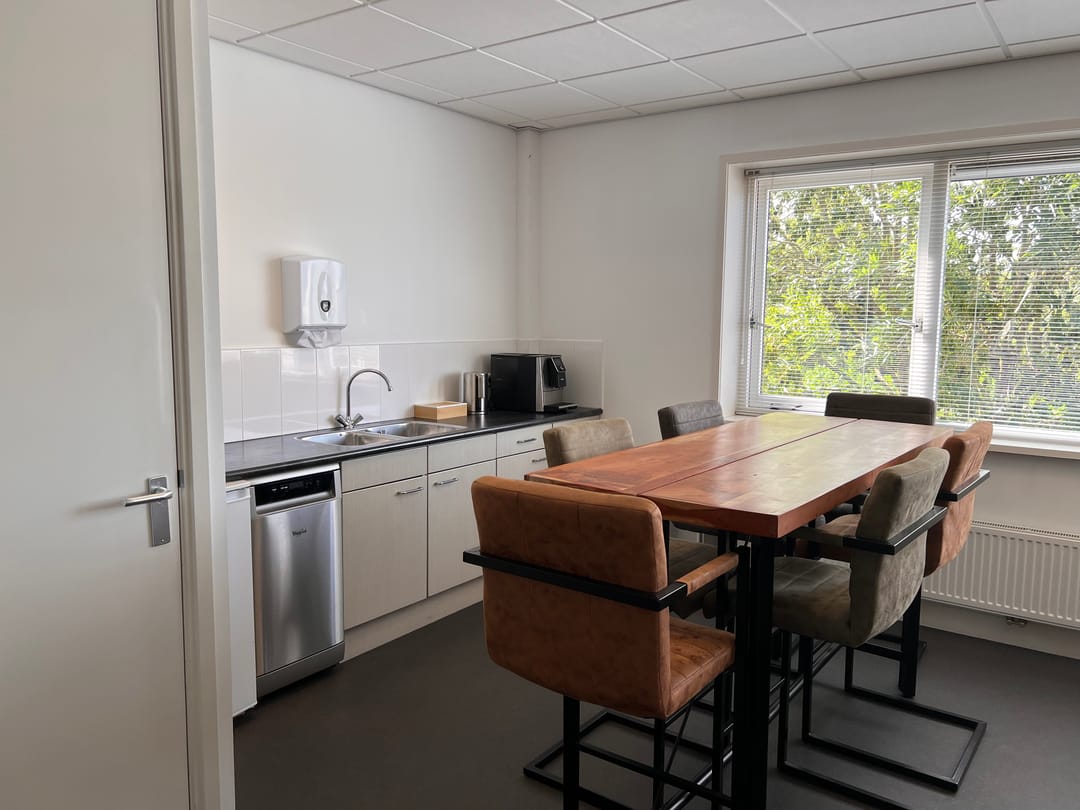 Net afgewerkte kantoorruimte met eigen opgang, toilet en kantine op een levendig bedrijventerrein in De Rijp.