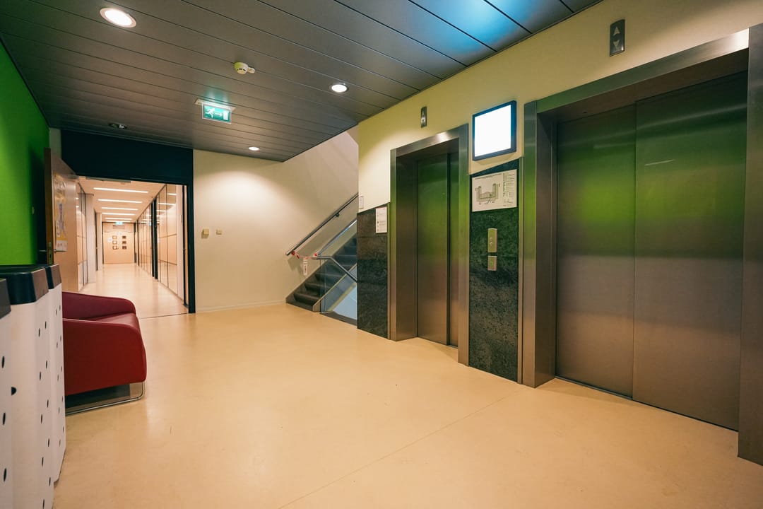 - Mechanical ventilation, built-in fittings, elevators, windows can be opened, cable ducts, modular ceiling, toilet, pantry, heating and room layout