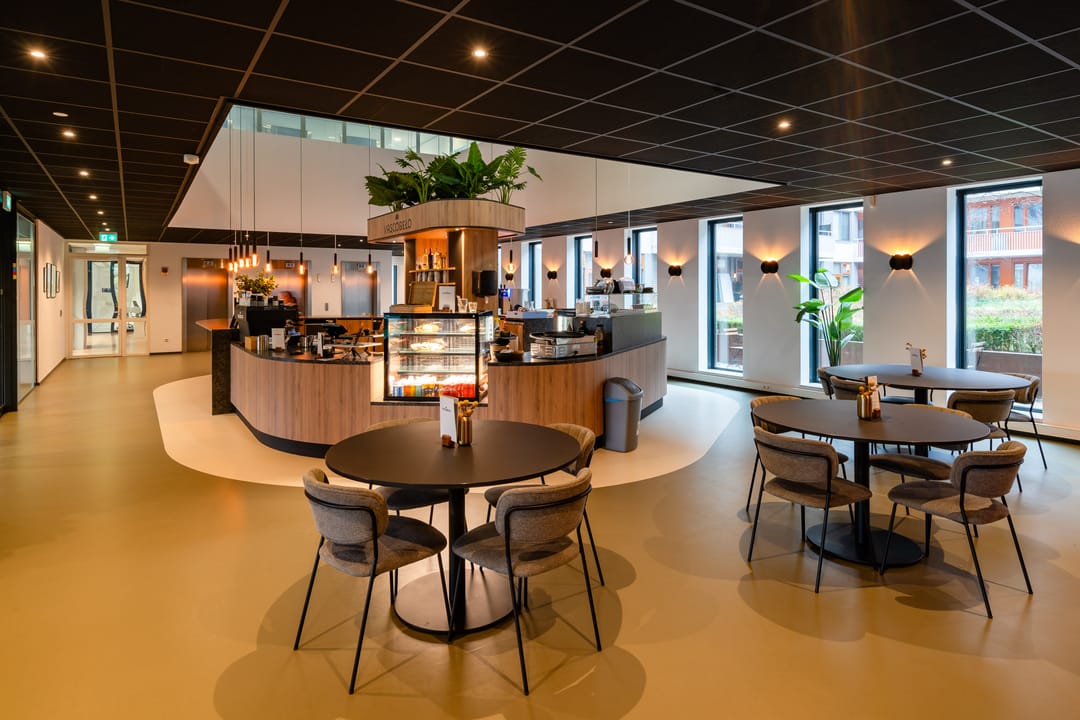 - gemeenschappelijke entree met receptiebalie, horeca en zitgelegenheid;