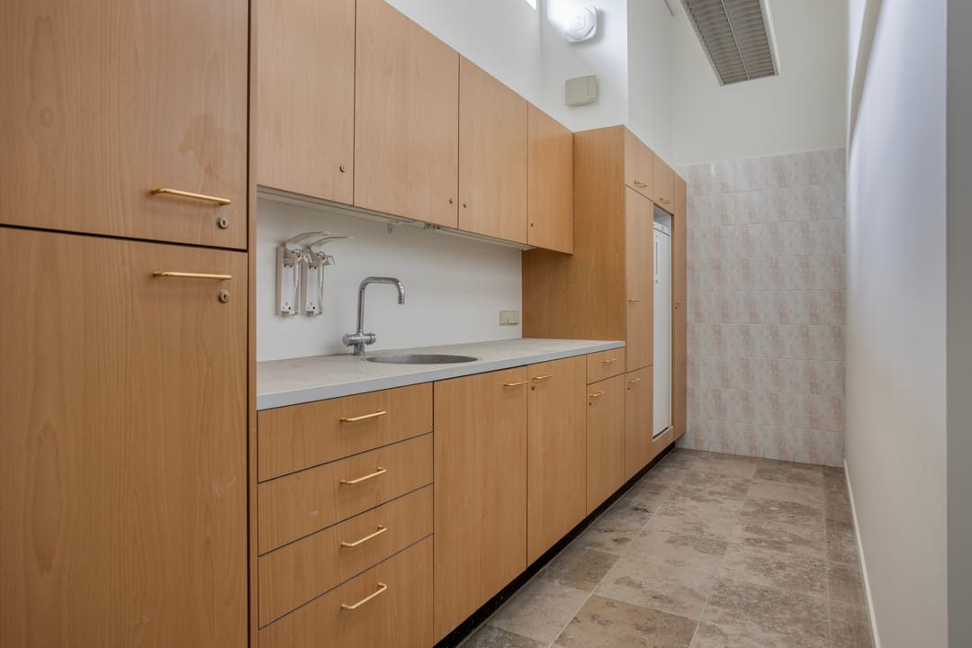 - Mechanical ventilation, built-in fittings, windows can be opened, cable ducts, toilet, pantry, heating and room layout