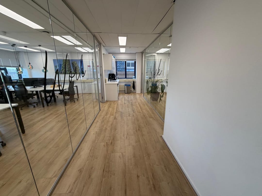 - Huidige indeling met glazen scheidingswanden