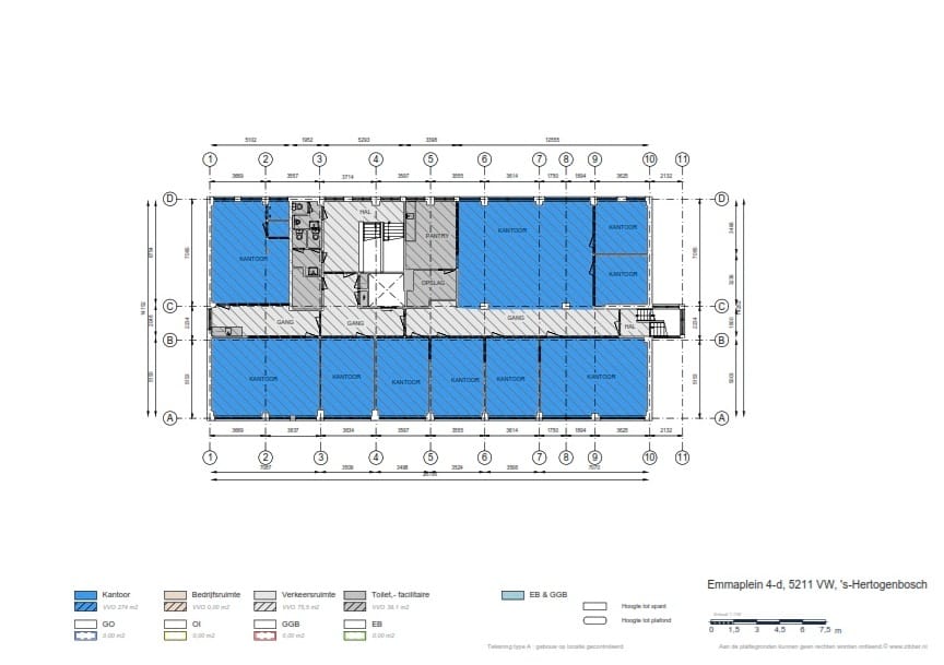 In het gebouw 'Emmastaete' is op dit moment circa 389 m² gelegen op de 3e verdieping beschikbaar.