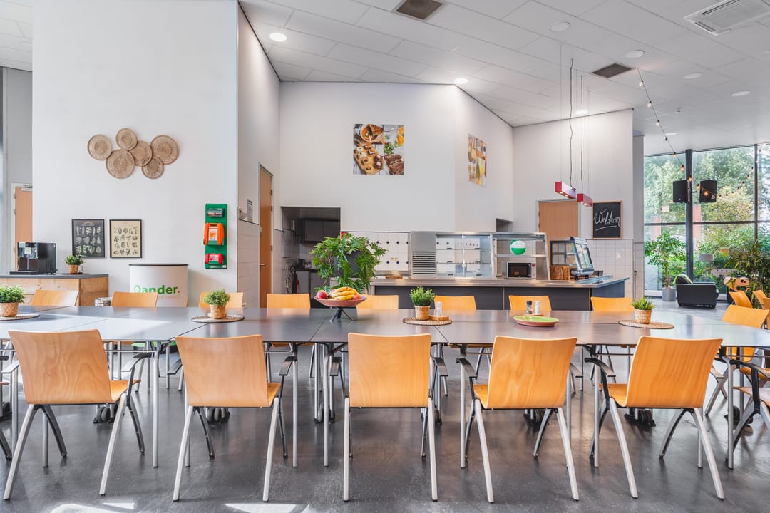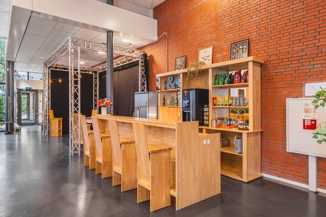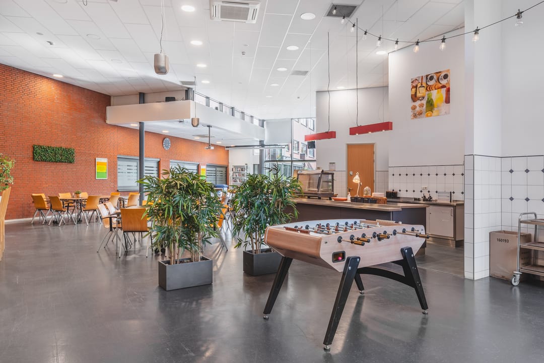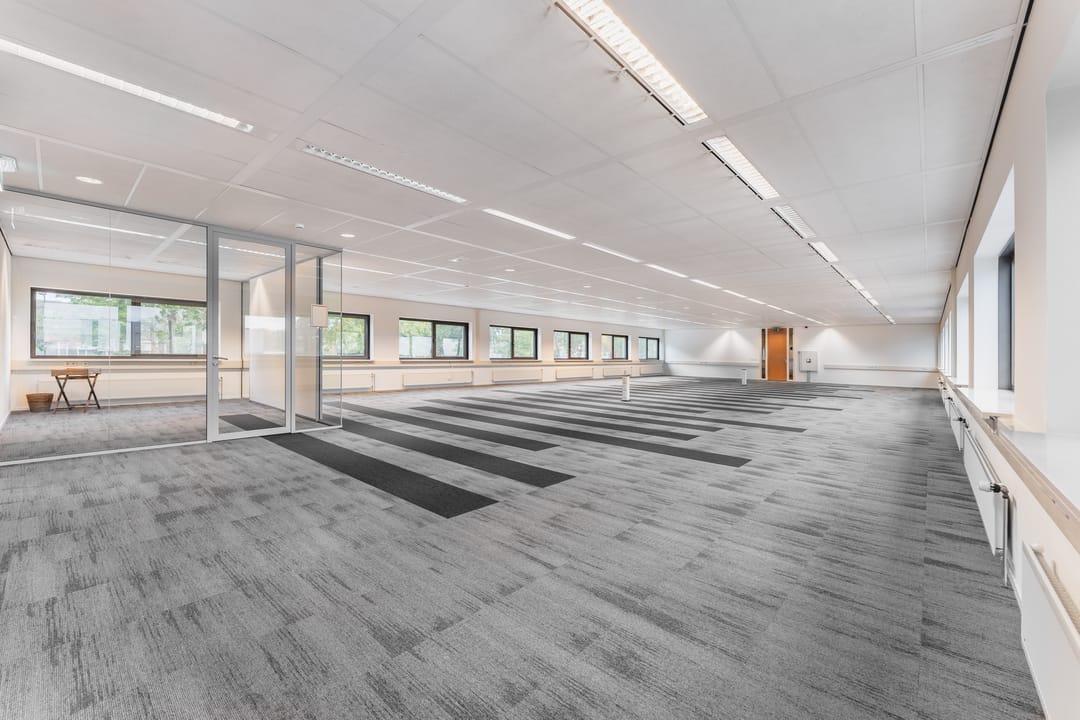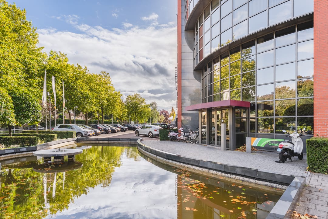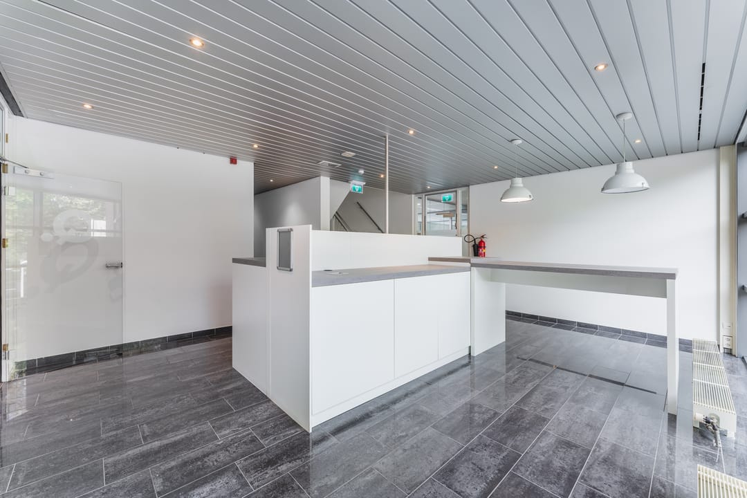 The heart of the building is formed by a communal area featuring wooden accents, a bar and comfortable seating where colleagues can meet informally. The space at the entrance is light and open, providing a professional and welcoming welcome for clients and visitors. With private parking on site or in the garage directly at the building, this is an attractive office location in Den Bosch.