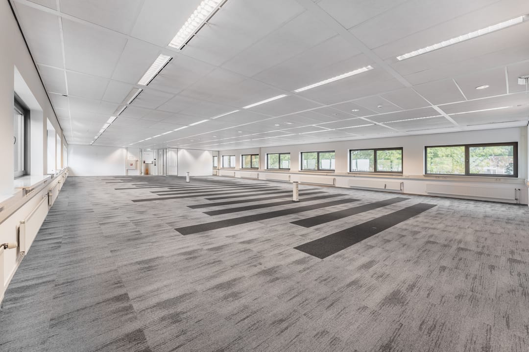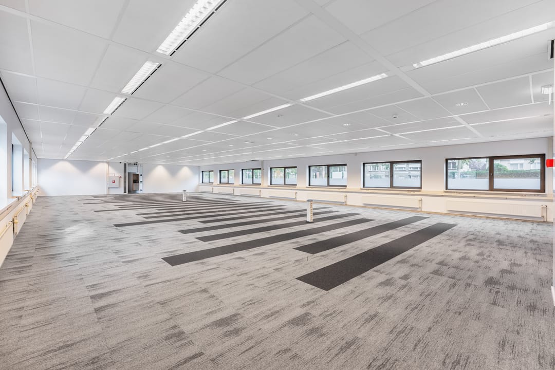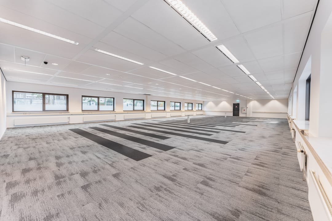 Larenweg 74 in ’s-Hertogenbosch comprises a representative office building with a bright, open character. Upon entering you immediately notice the abundant daylight. The high ceilings and large windows create a spacious feel and make this a pleasant place to work. The elongated office floors are arranged in a clear and practical manner and offer plenty of options for both open-plan workstations and separate offices. On the upper floor there is a pantry where staff can make coffee or take a short break.