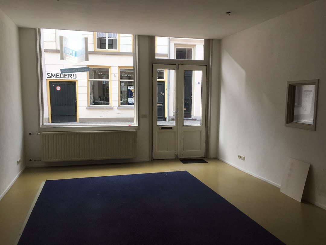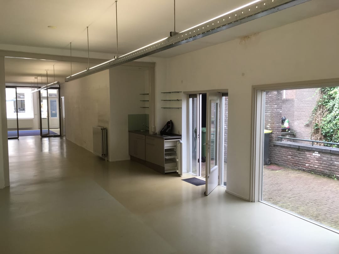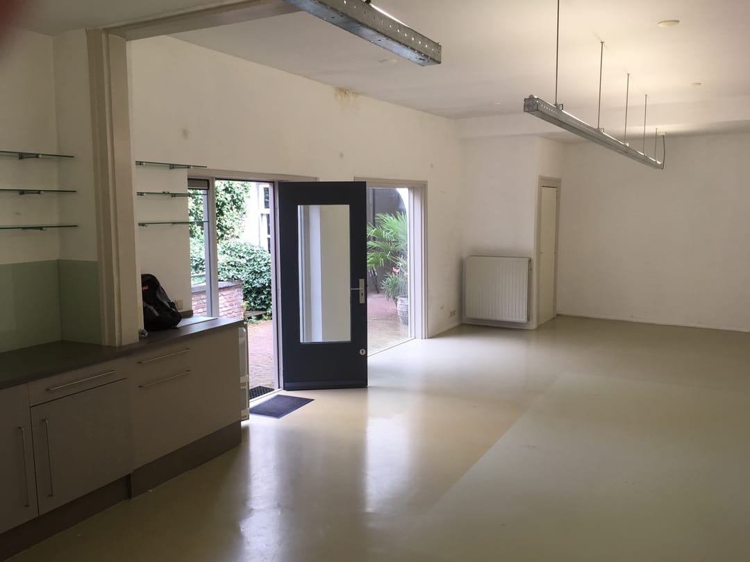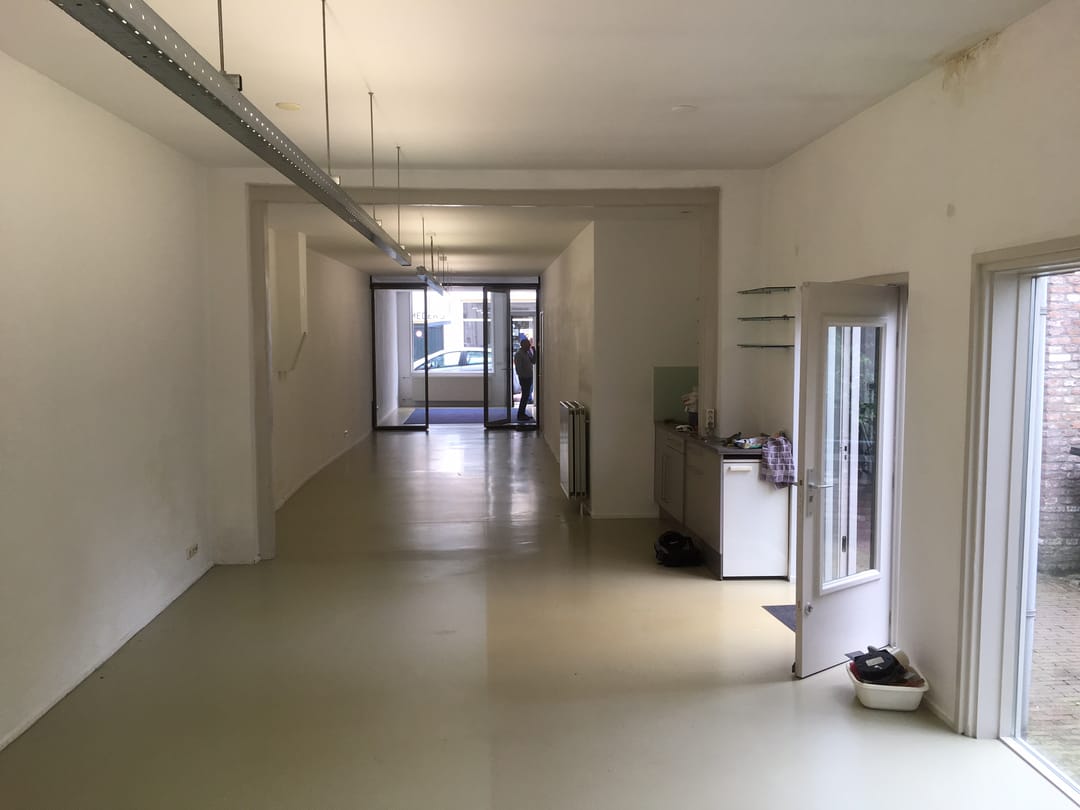 Zoals op de foto’s zichtbaar heeft de ruimte zowel aan de voorzijde en achterzijde een entree en daglicht. De entree aan de achterzijde is te bereiken via het (privé) steegje direct naast het pand.