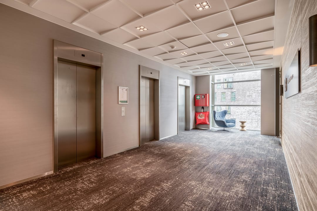 - Mechanical ventilation, peak cooling, built-in fittings, elevators, cable ducts, modular ceiling, toilet, pantry, heating and room layout