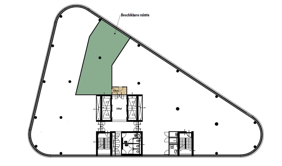 Het object beschikt over een zeer hoogwaardige entree onder andere voorzien van receptie en informele zitplekken. Op de begane grond is tevens Grandcafe de Wens gehuisvest. Middels 4 personenliften zijn de hoogwaardige verdiepingsvloeren eenvoudig en snel te bereiken. Door de grote raampartijen genieten de vloeren van veel direct daglicht, hetgeen bijdraagt aan een fijne werkomgeving.