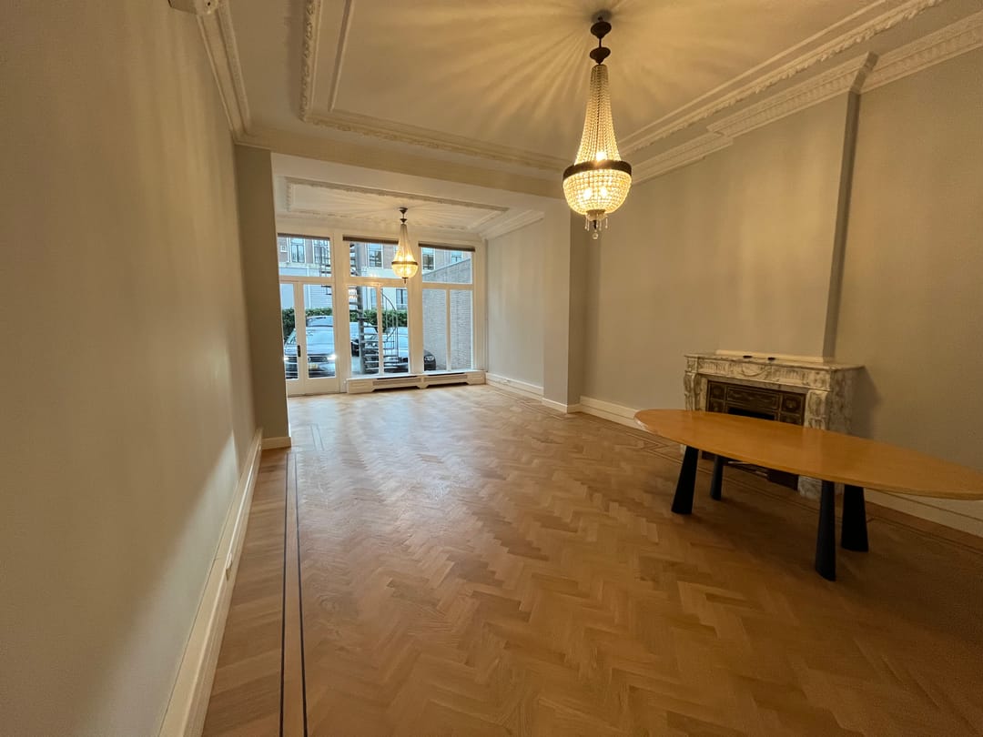 Als u voor de deur staat kunt u het alom bekende Lange Voorhout en het Plein 1813 zien liggen.