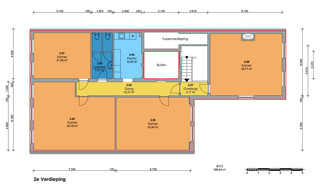 Het betreft een kantoorruimte van ca. 175 m² gelegen op de 2e verdieping.