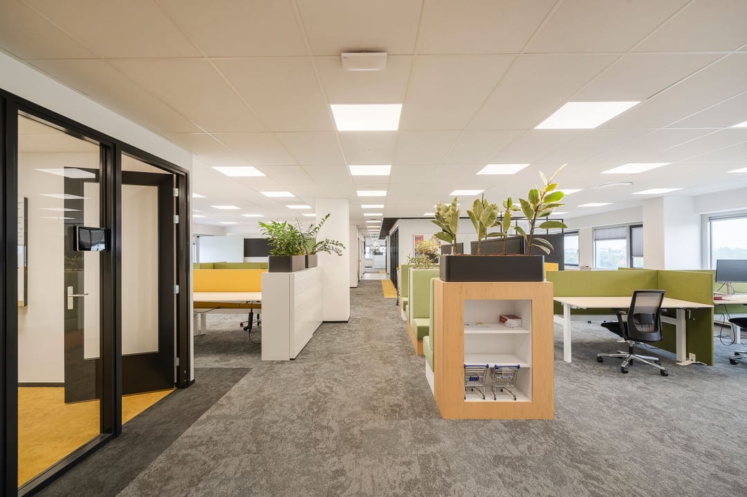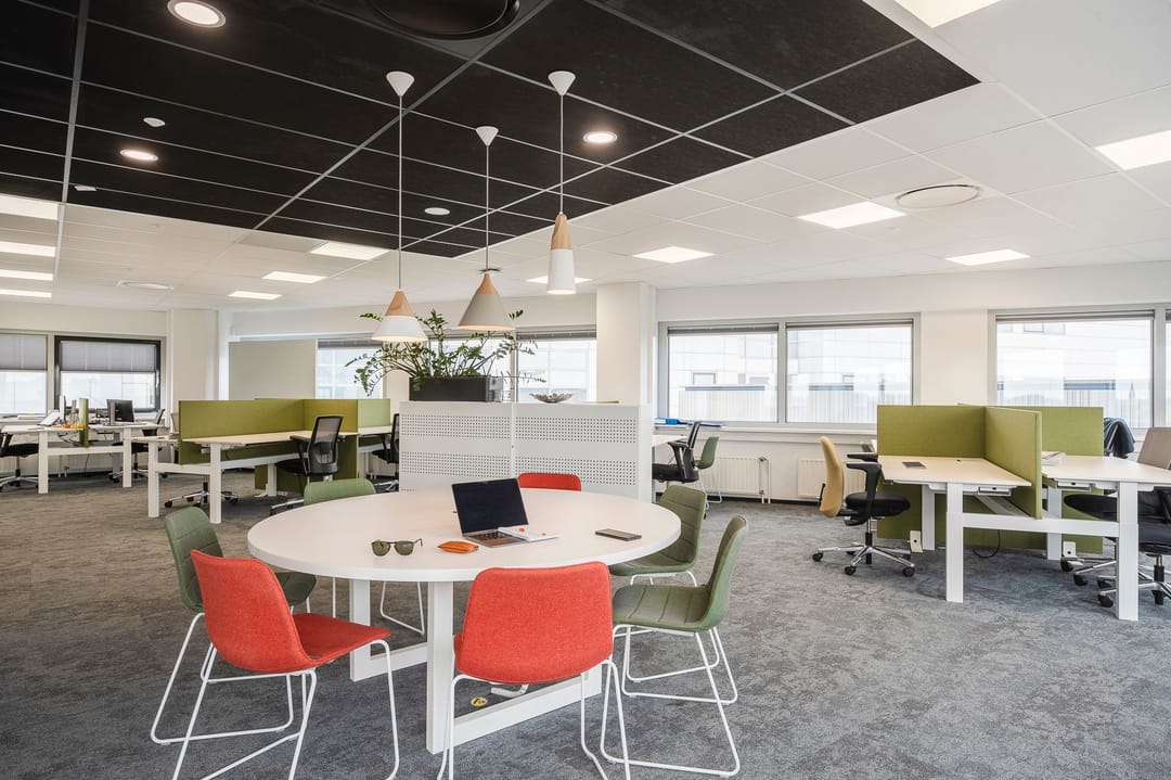 - Mechanical ventilation, peak cooling, built-in fittings, elevators, windows can be opened, cable ducts, modular ceiling, toilet, pantry, heating and room layout