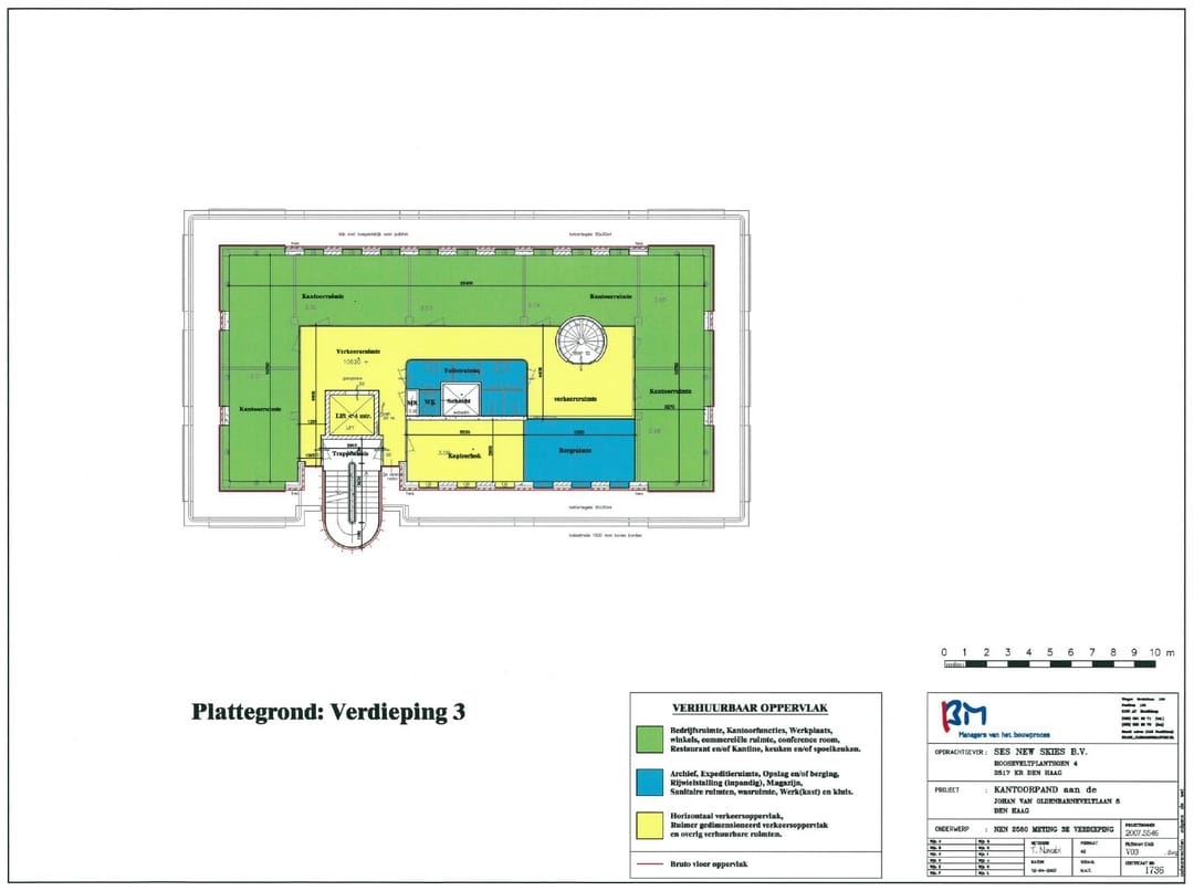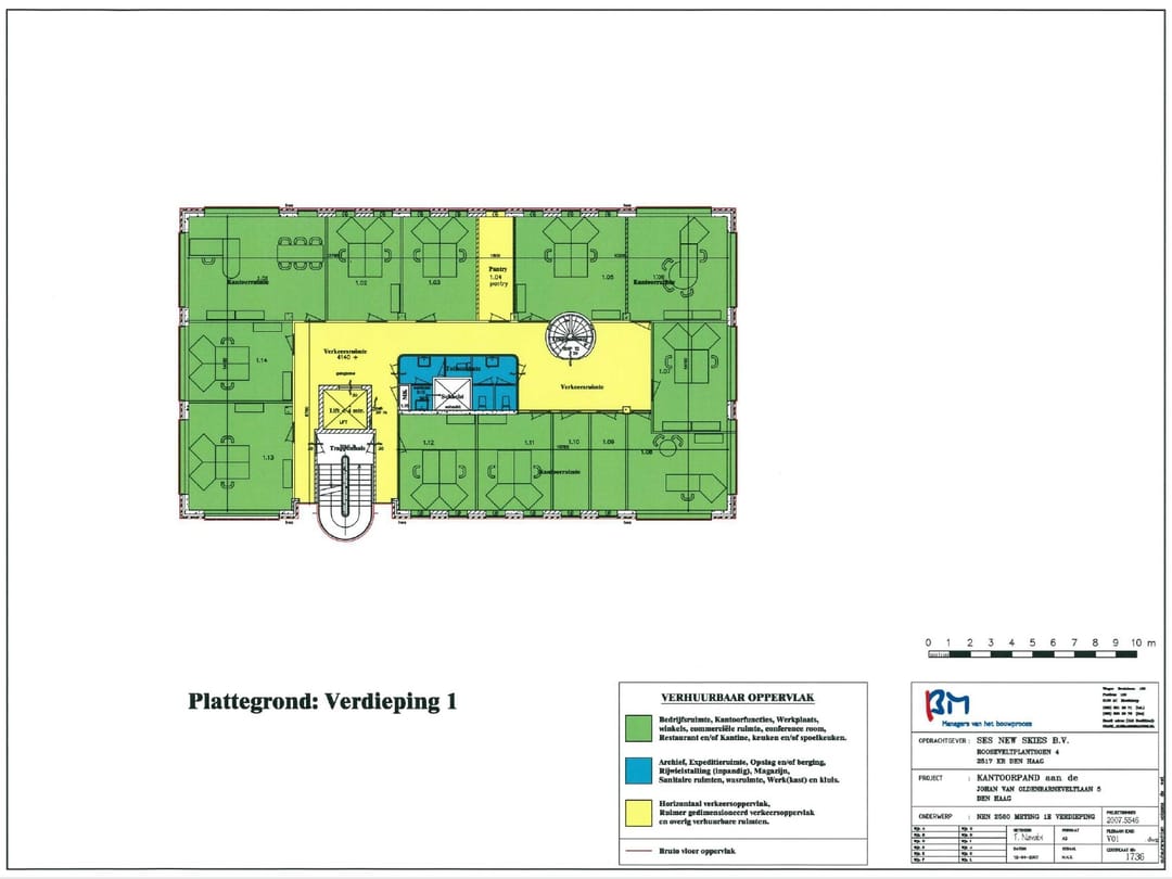 Het gebouw bestaat uit een totaal verhuurbaar vloeroppervlak van 1,744 m² v.v.o. kantoorruimte, als volgt onderverdeeld: