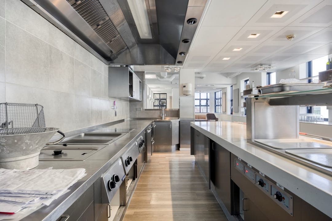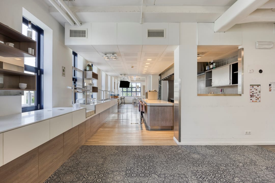 • Bedrijfskantine inclusief keukeninstallatie en spoelkeuken op de derde verdieping;