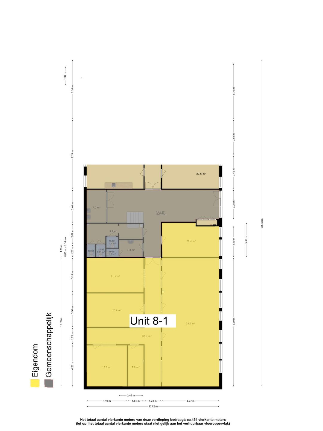 De kantoor- en bedrijfsruimte is afgewerkt door middel van systeemplafonds met ledverlichting, flexibele systeemwanden en tapijt vloerbedekking. Doordat de scheidingswanden tussen de kantoren niet dragend zijn, is het mogelijk om de oppervlakte van de kantoorruimten naar wens aan te passen.