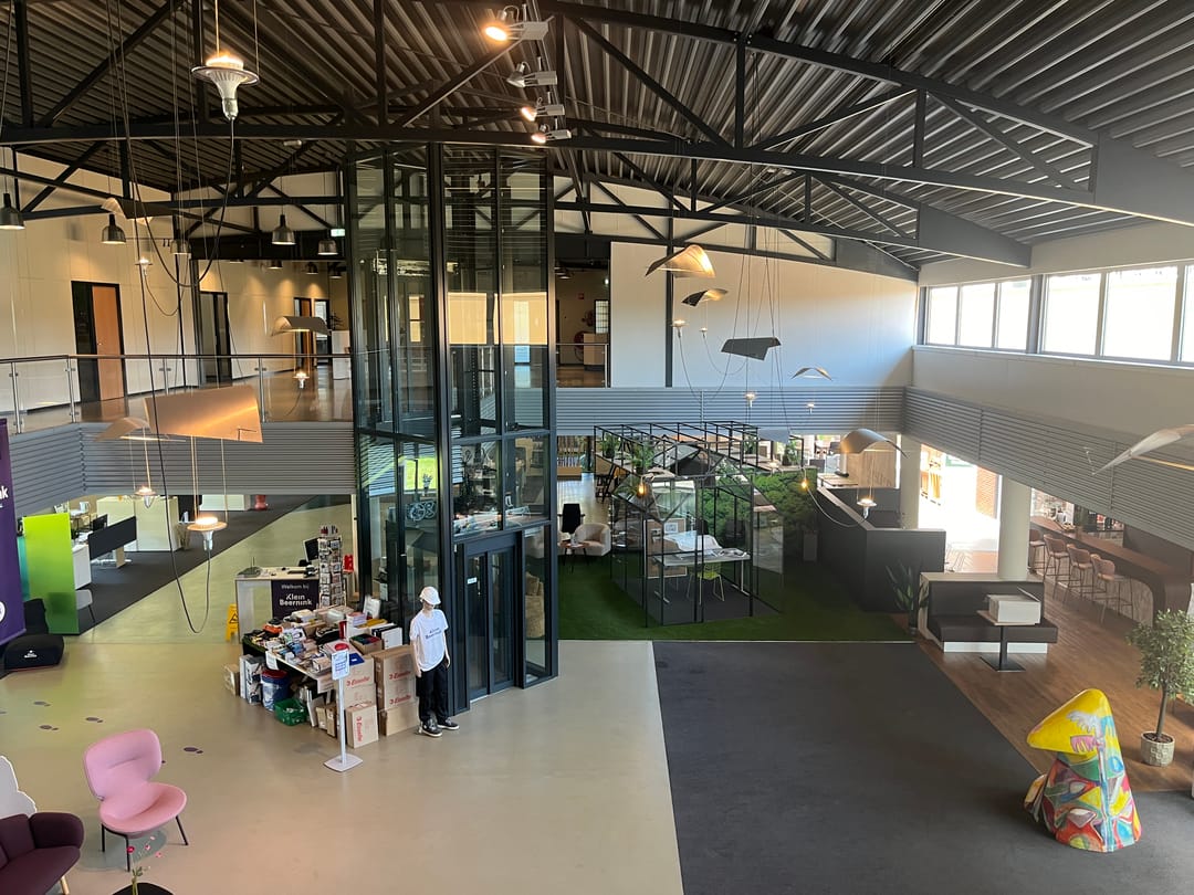 - grote open trap en tevens lift naar showroom/kantoren op de verdieping;