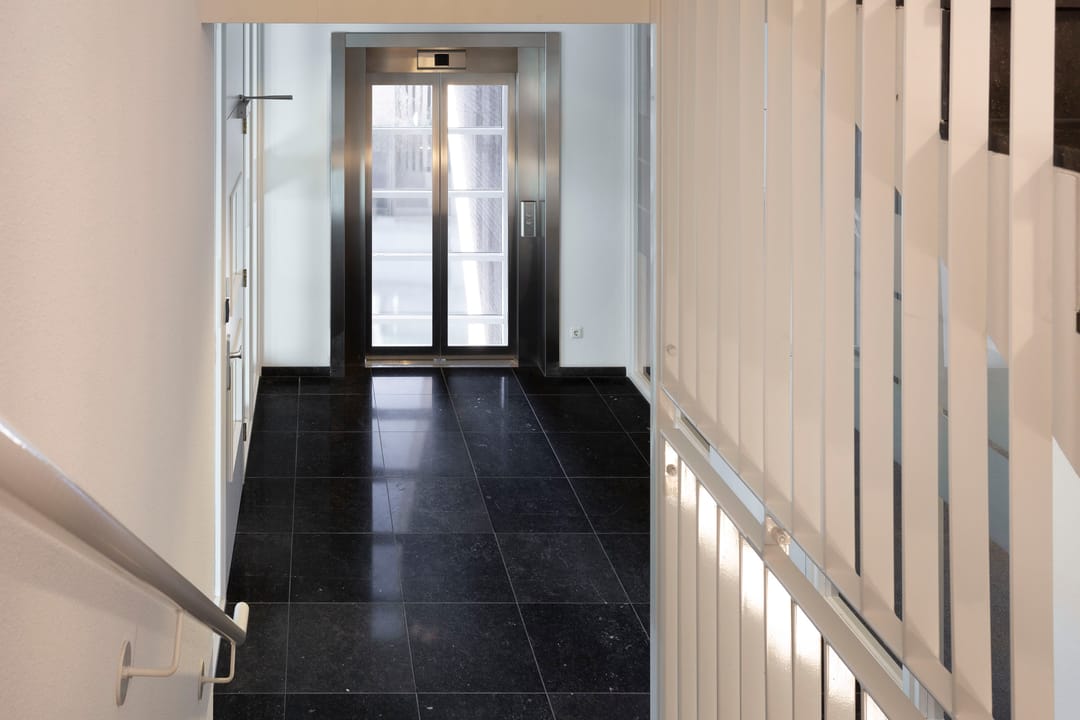- Mechanical ventilation, peak cooling, built-in fittings, elevators, windows can be opened, cable ducts, modular ceiling, toilet, pantry, heating and room layout