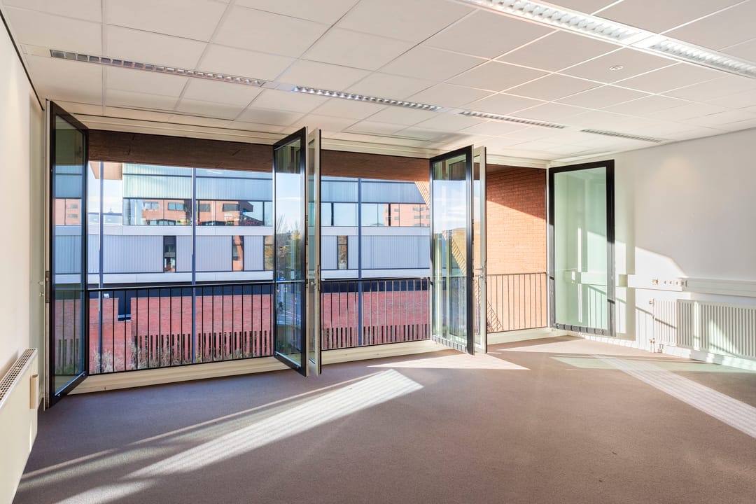 Licht en ruimte: hoge plafonds en een open indeling zorgen voor een inspirerende en gezonde werkomgeving.