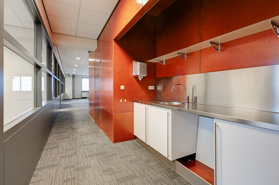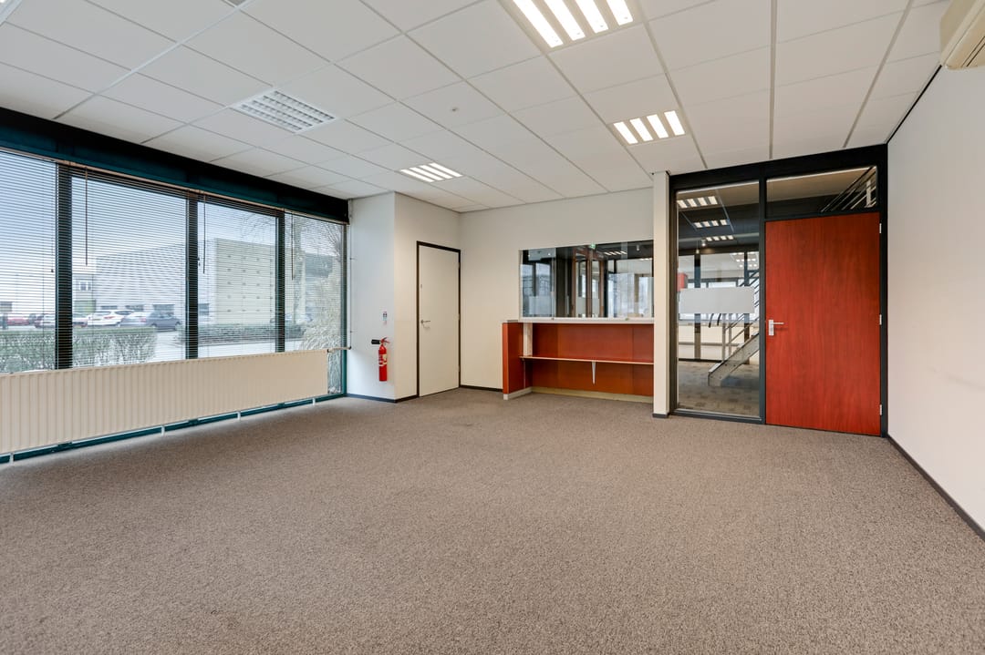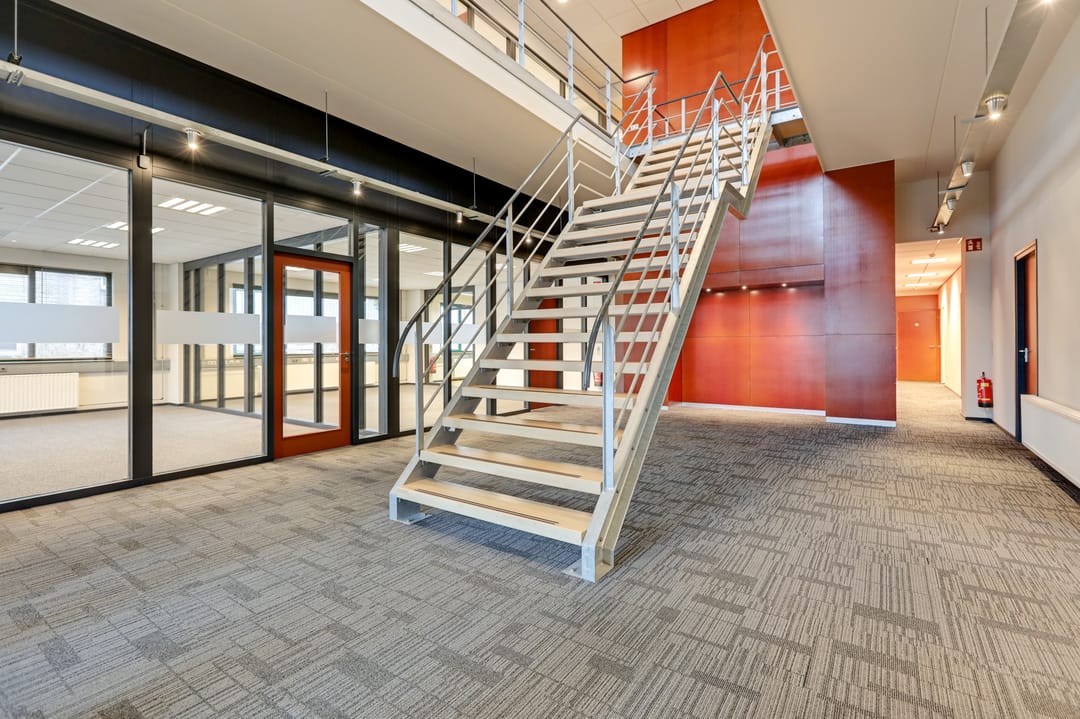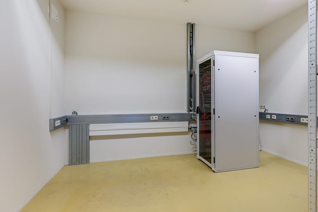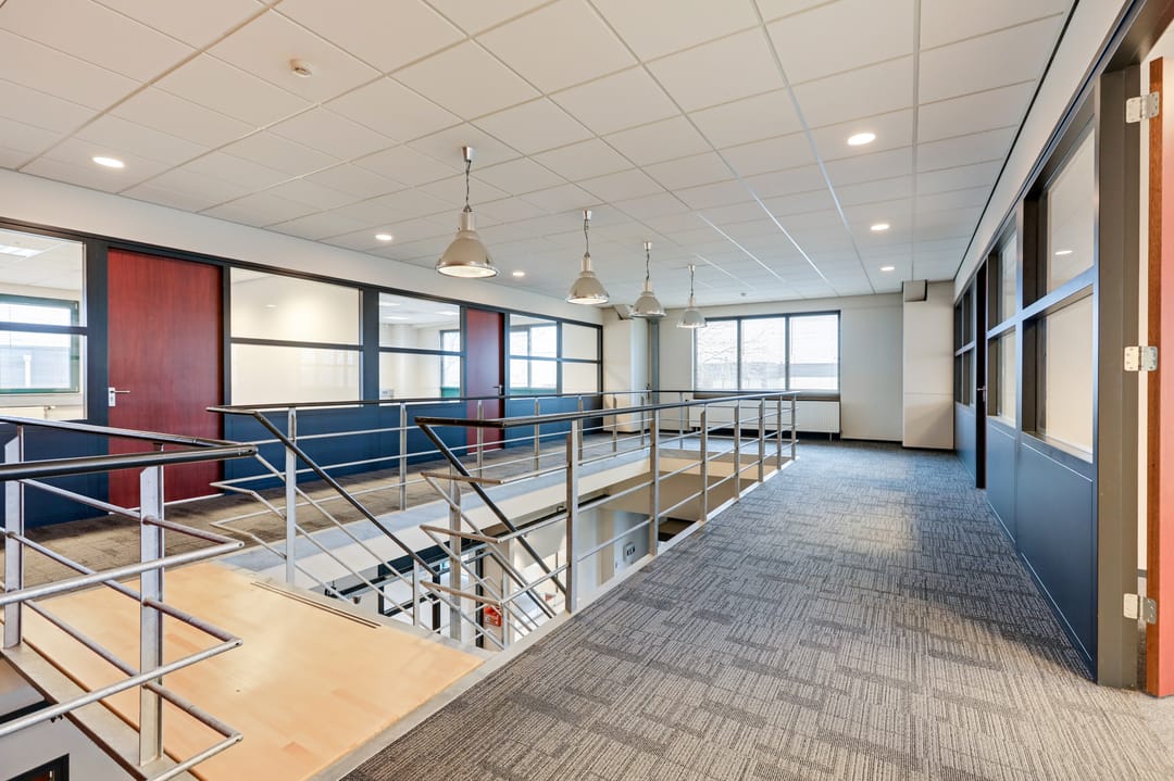 De eerste verdieping beschikt over een fraaie omloop met vide, wat zorgt voor een open en hoogwaardige uitstraling. Hier bevinden zich onder andere zeven vrijwel vierkante kantoor-/werkkamers (ca. 35 tot 40 m²), een open werkruimte, een dubbele gescheiden toiletgroep, een pantry en diverse functionele ruimten, zoals een magazijn, CV-ruimte en een grote gekoelde serverruimte.