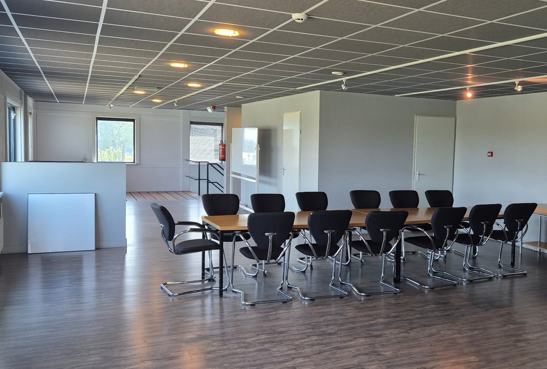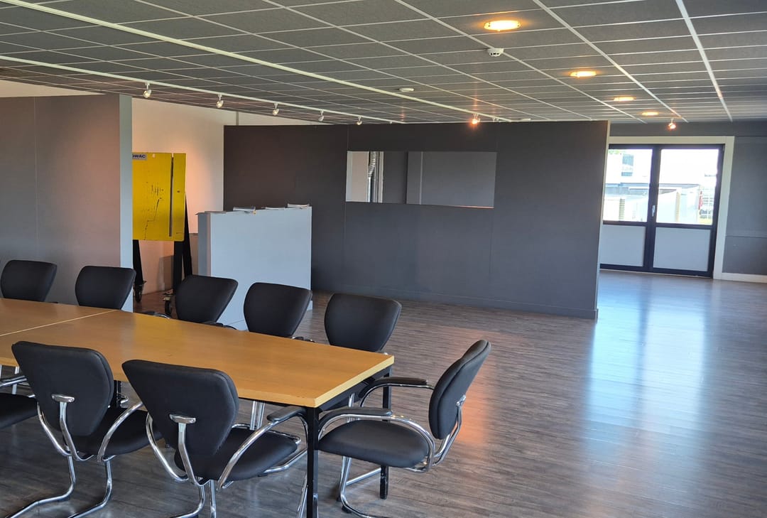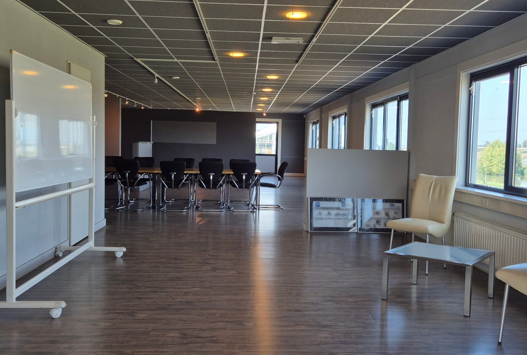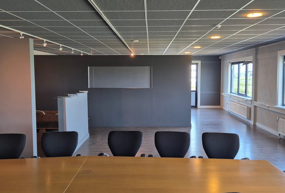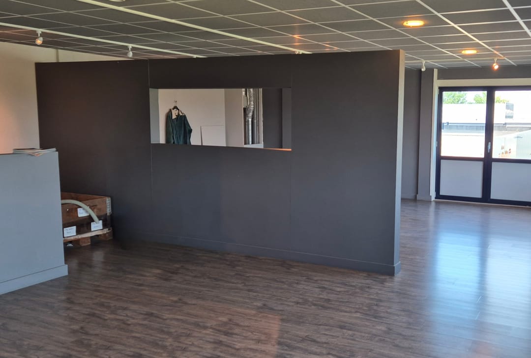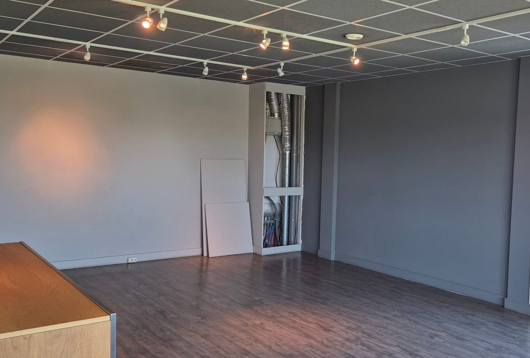 De ruimte is praktisch ingedeeld en voorzien van alle basisfaciliteiten die een modern kantoor nodig heeft.