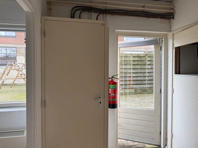 Entree, cv-ruimte, toilet met doucheruimte, keukentje, meterkast en een ruime kantoorruimte.