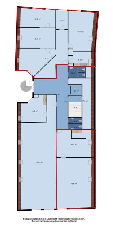 Voormelde oppervlakten zijn indicatief berekend aan de hand van opname ter plaatse, op basis van plattegrondtekeningen en informatie verkregen via oppervlakten zijn zo secuur mogelijk vastgesteld, doch mogen niet worden aangemerkt als verhuurbare oppervlakte zoals gedefinieerd door het Nederlands Normalisatie-instituut in bijlage B van NEN 2580.